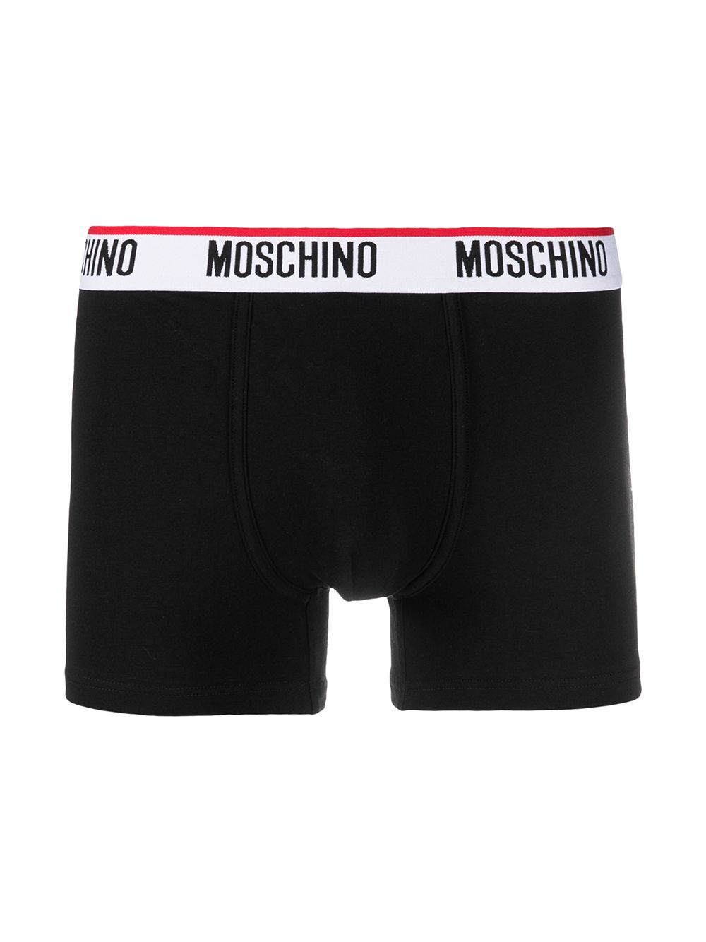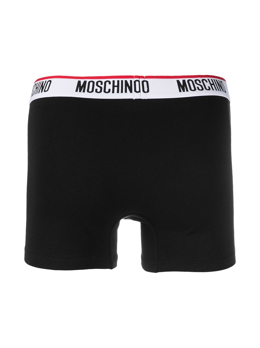 Set Moschino composto da 3 boxer intimi uomo fantasia su base nera, con elastico logato e vestibilità aderente.