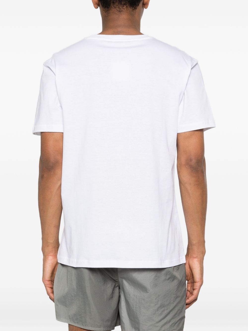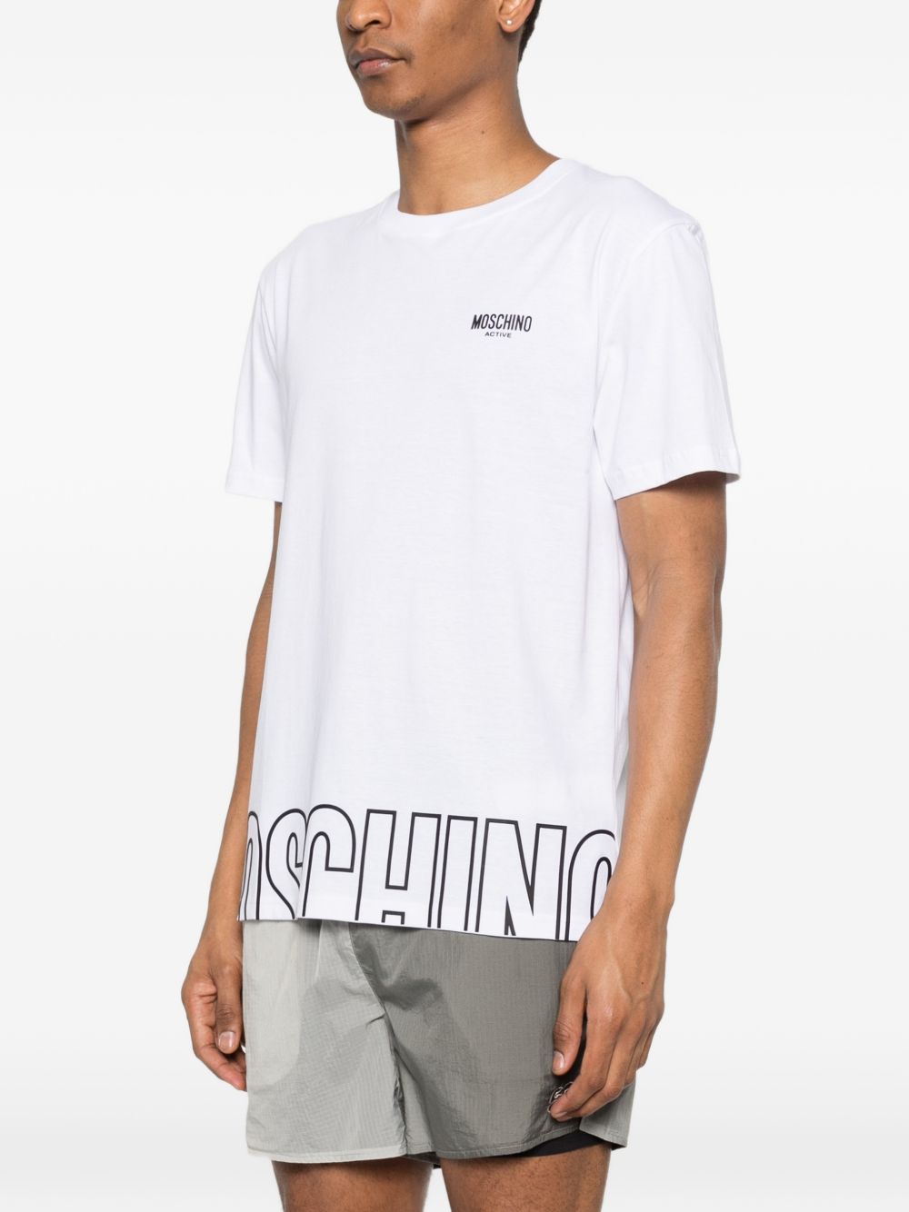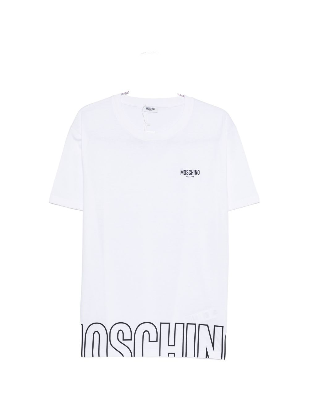 T-shirt Moschino da uomo bianca con logo, girocollo e maniche corte. Capo essenziale, pulito e facilmente abbinabile.