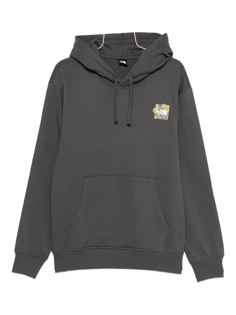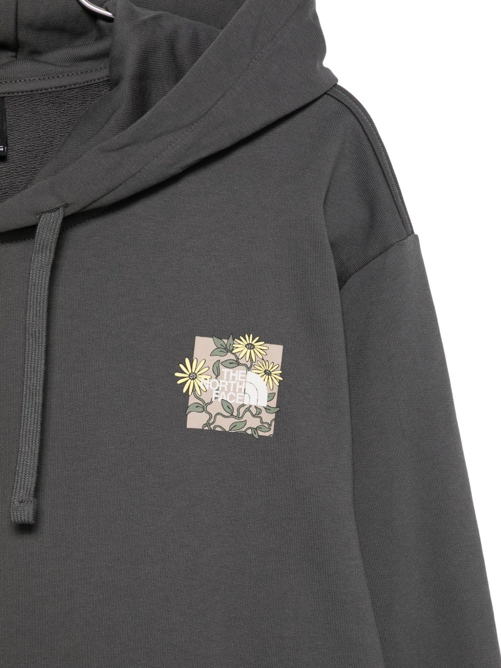 logo sul petto con dettagli fiori, stampa dietro, tasca a marsupio, cappuccio con coulisse, 100% cotone