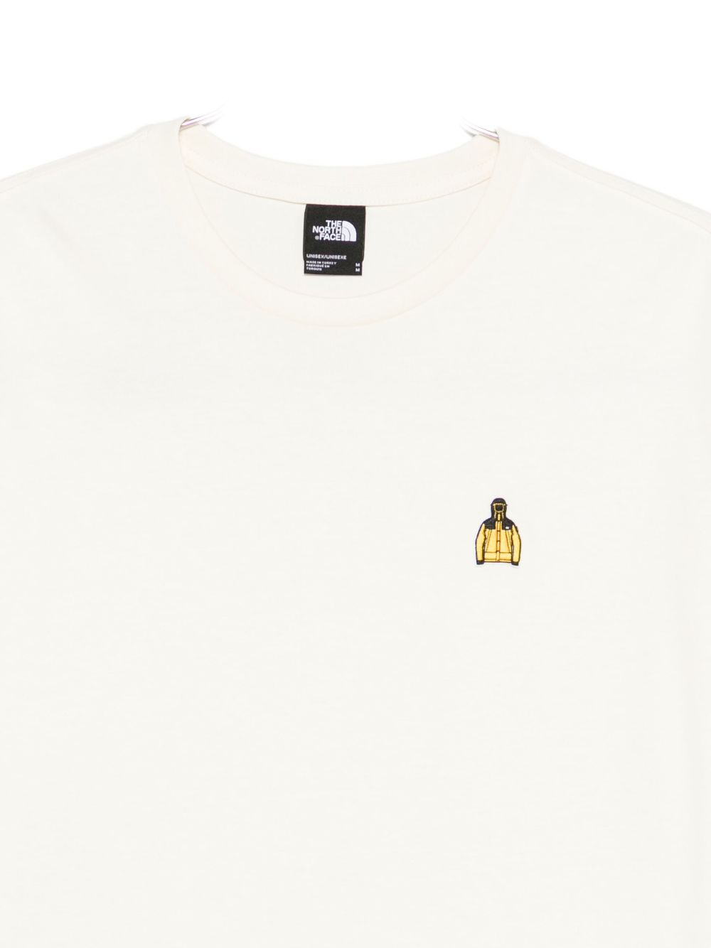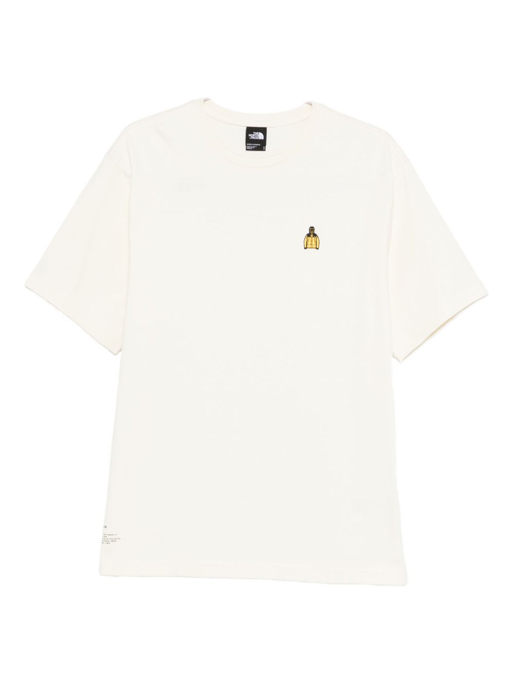 realizzata in cotone, scollo rotondo, logo dietro, mini piumino ricamato davanti sul petto, maniche corte, orlo dritto, 100% cotone