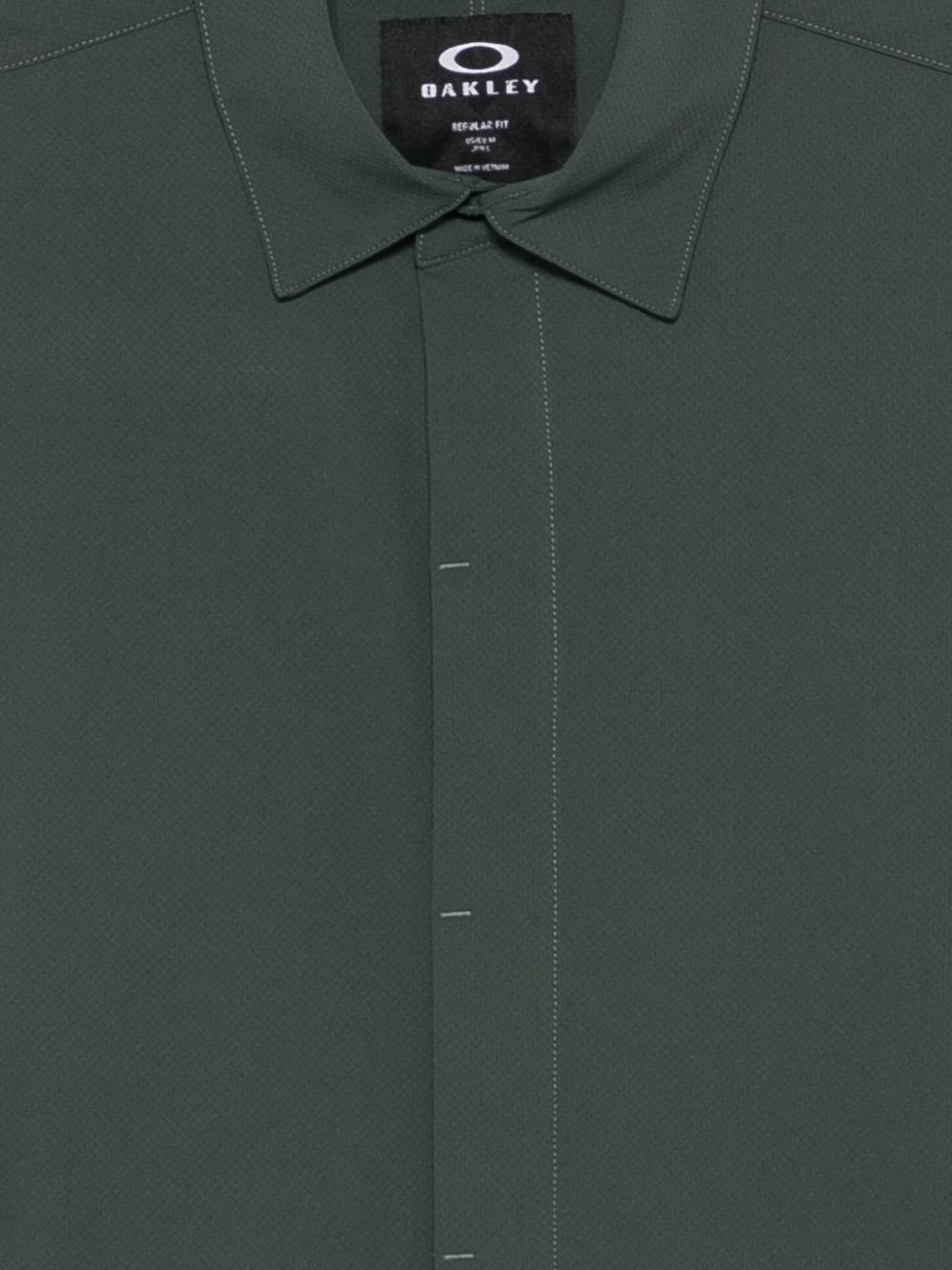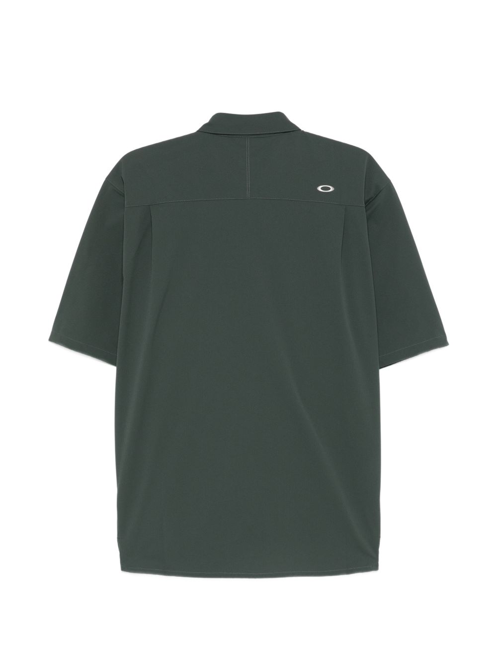 Realizzata in poliestere, colletto alla coreana, maniche corte, etichetta logata davanti, chiusura con bottoni, 100% poliestere