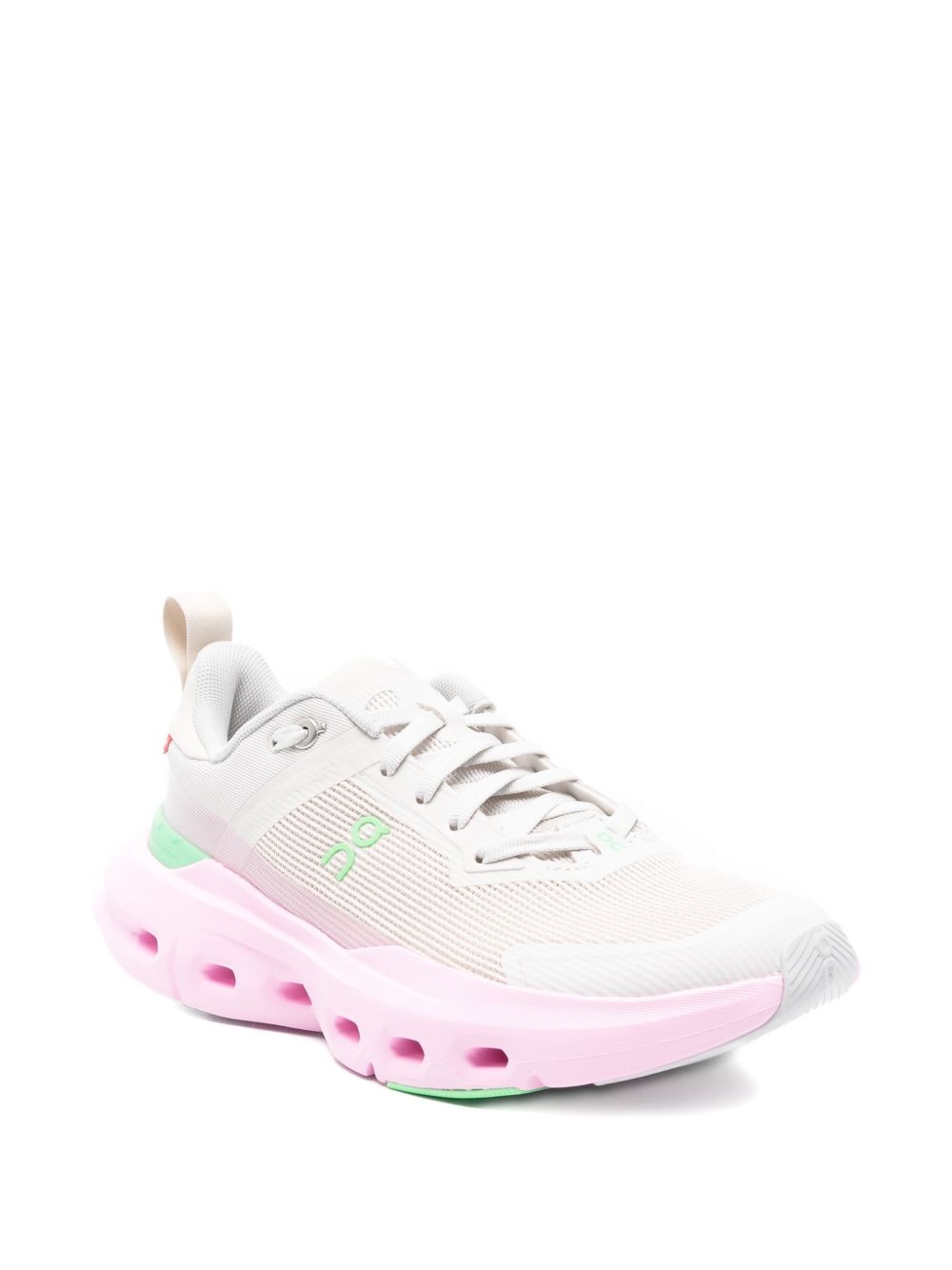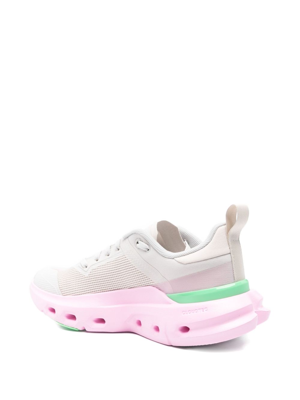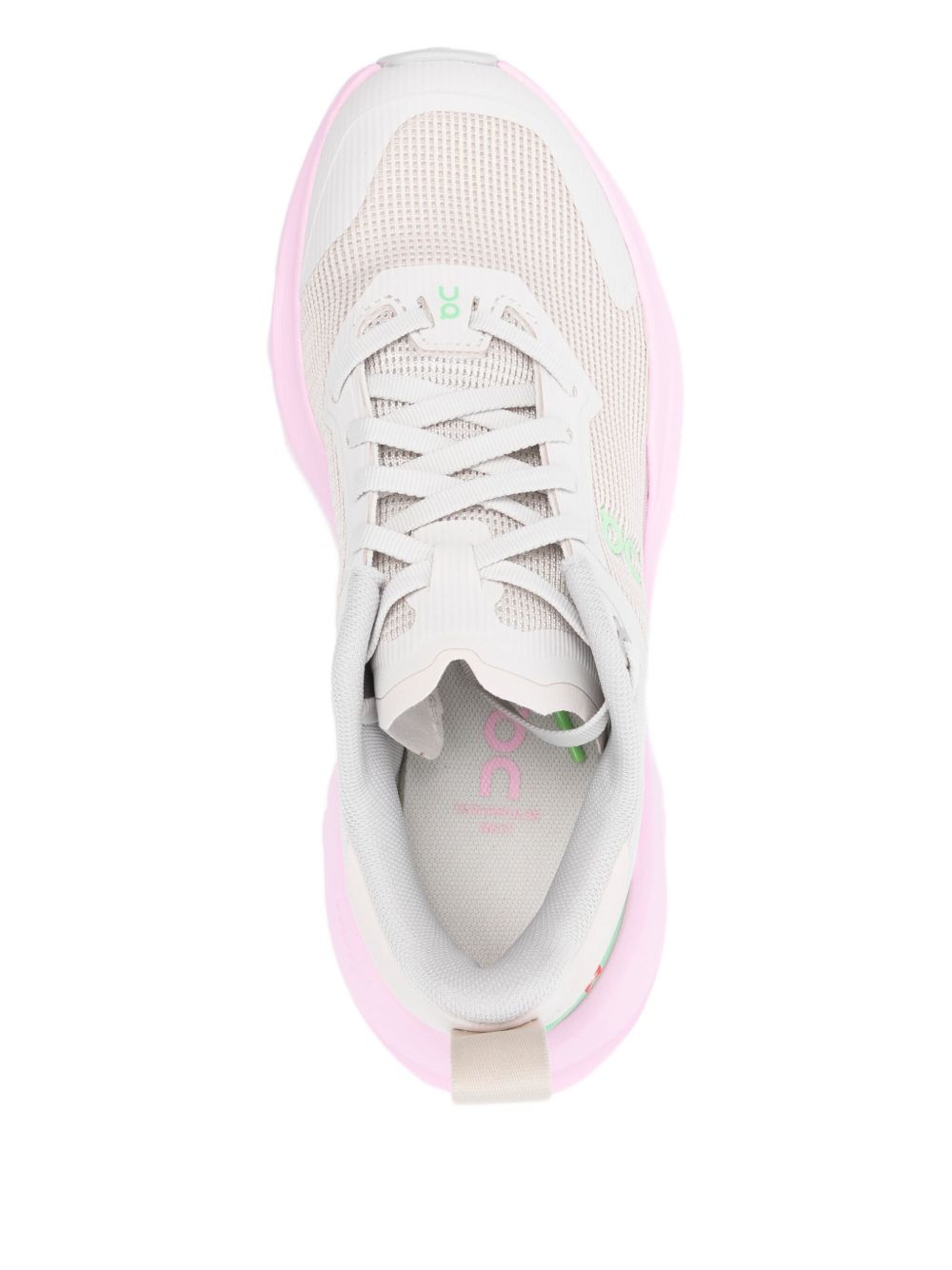 Realizzata con superschiuma Helion e ammortizzazione CloudTec, tallone rinforzato, allacciatura rapida, dettaglio logo.