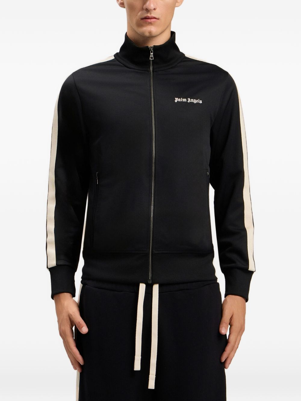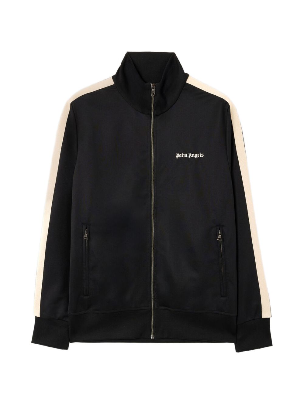 Realizzata in poliestere, collo alto, chiusura con cerniera, logo ricamato sul petto, banda laterale a contrasto, due tasche davanti con zip, polsini e colletto a coste, 97% poliestere, 3% elastam