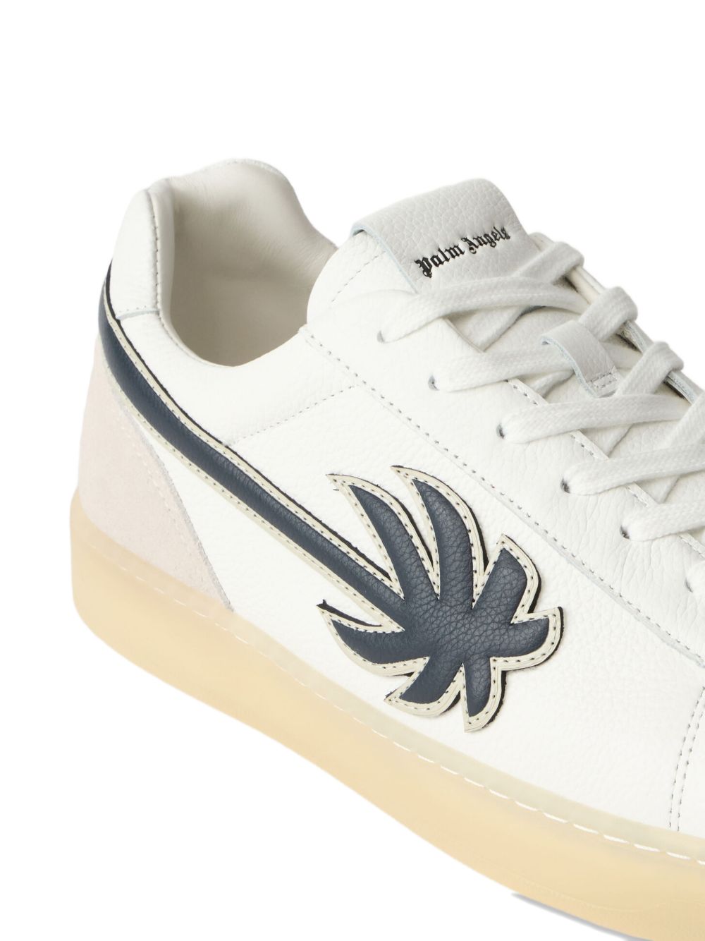 Sneakers Palm Angels Palm Tennis in colore bianco con dettagli a contrasto beige, caratterizzate da unestetica pulita ma più ricercata.