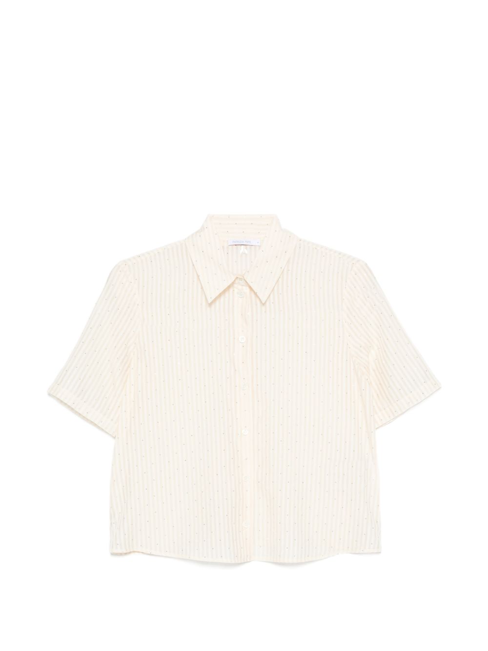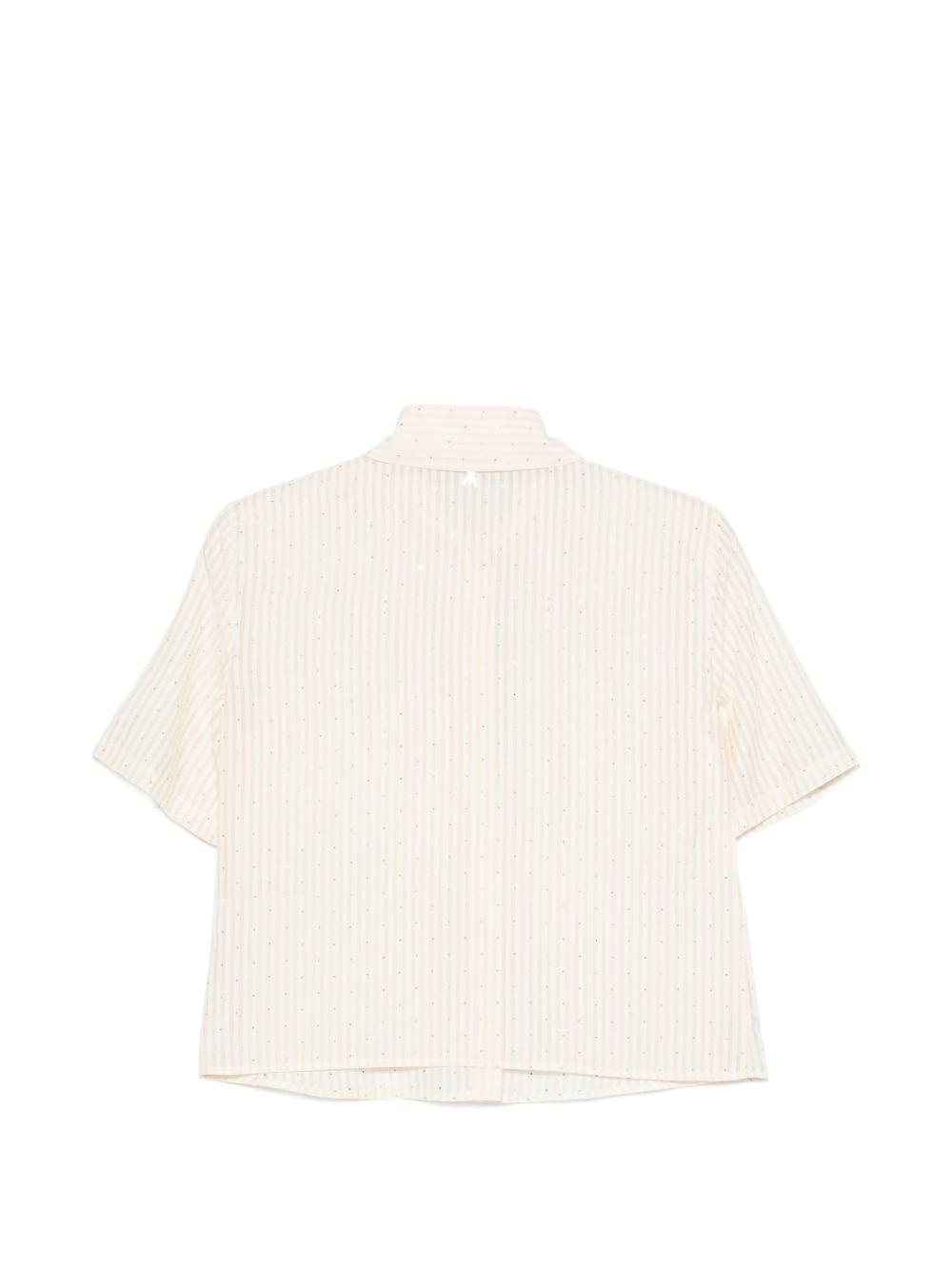 Realizzata in misto lyocell, motivo a righe, maniche corte, colletto polo, chiusura con bottoni, dettaglio applicazione cristalli, 55% lyocell, 36% poliestere, 9% poliammide