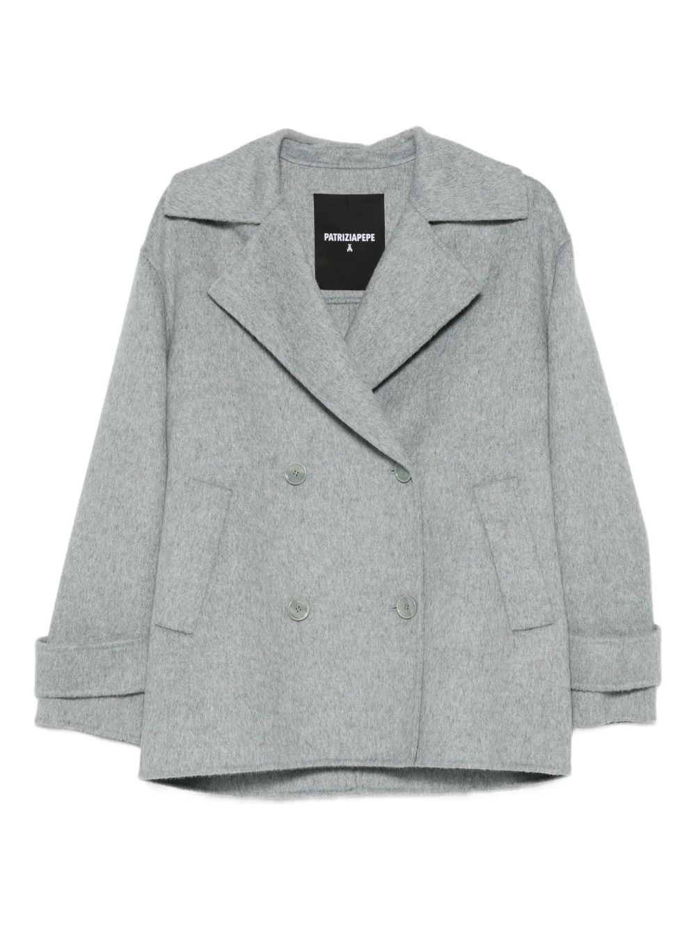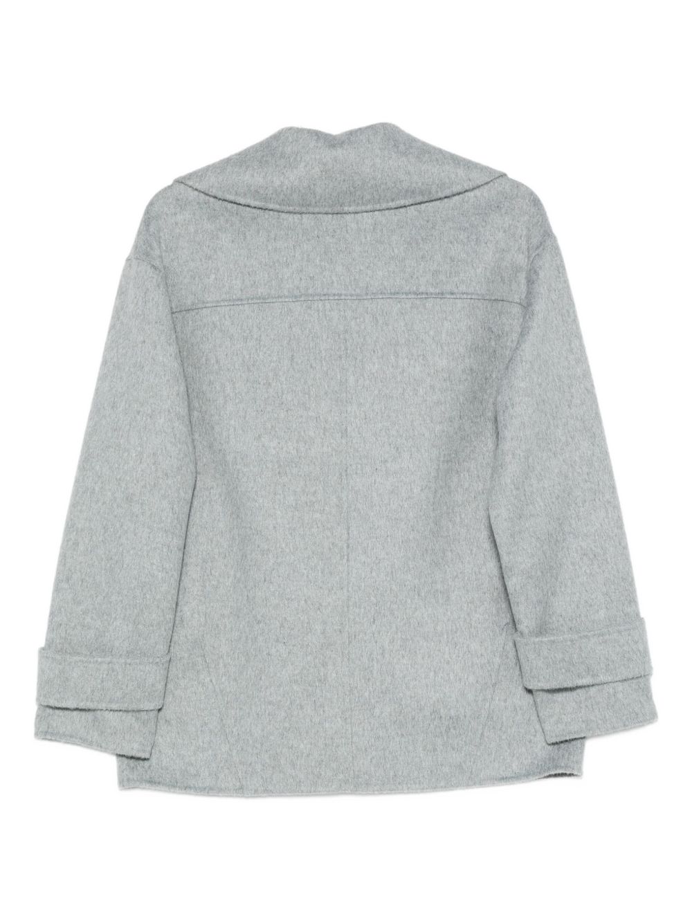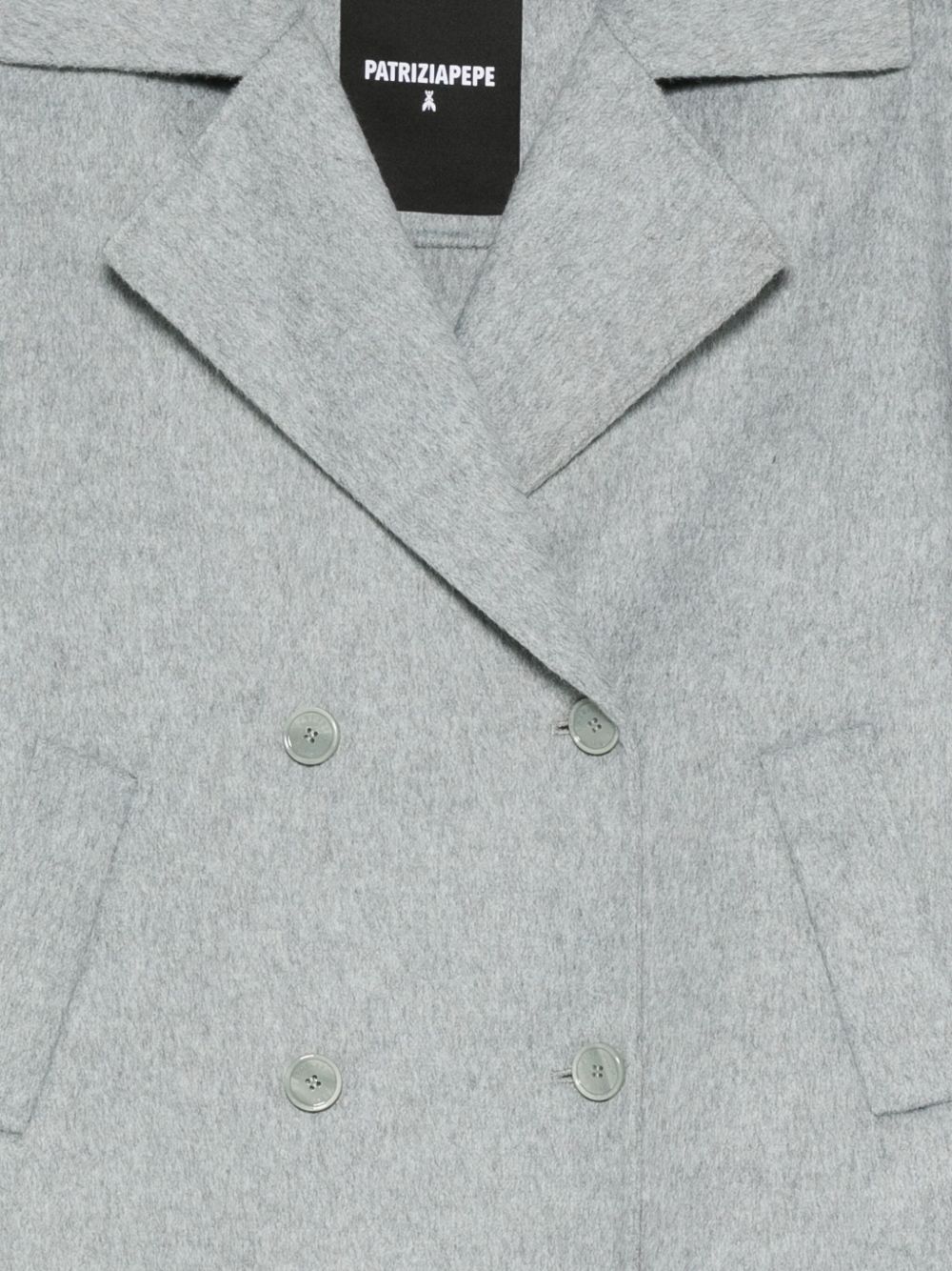 realizzata in lana, chiusura frontale con bottoni, due tasche oblique davanti, taglio corto, 90% lana, 10% alpaca