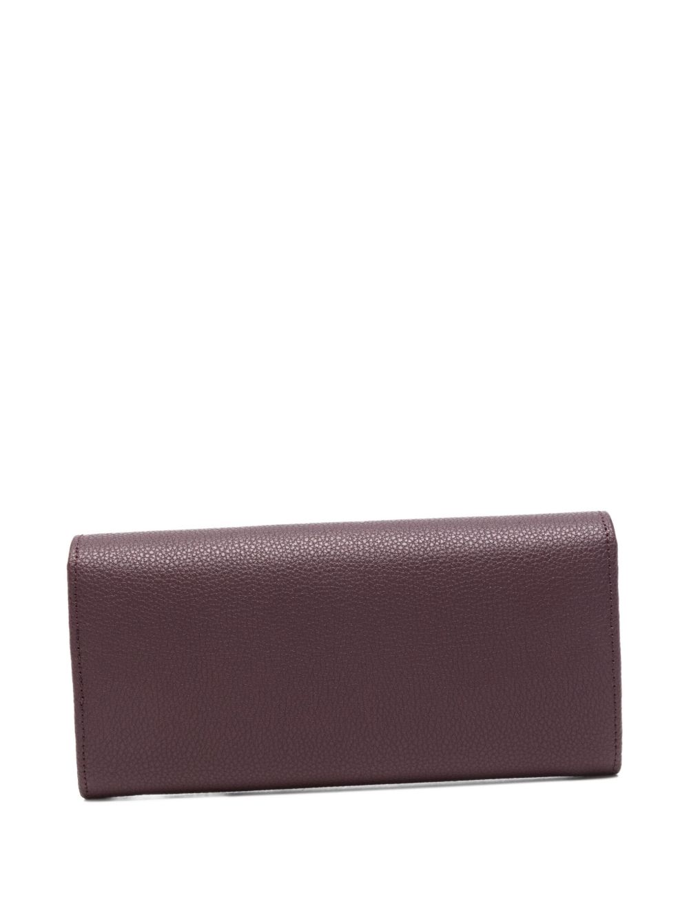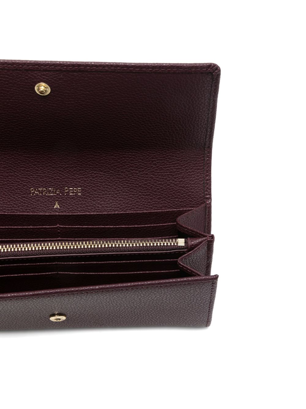 Realizzato in pelle di vitello, placca logo davanti color oro, trama zigrinata, chiusura con bottone a pressione, tasche interne con zip e a soffietto, 100% pelle di vitello