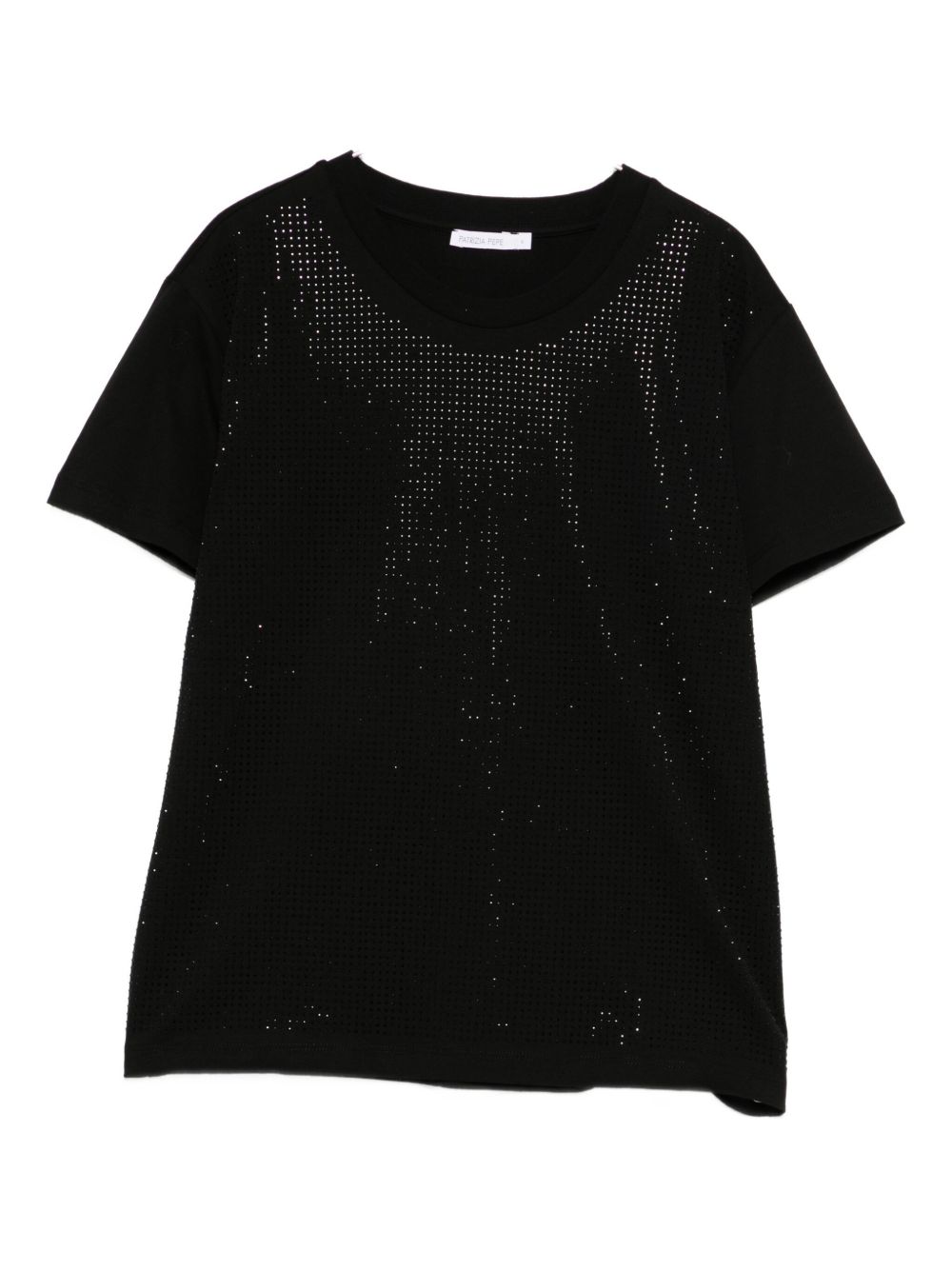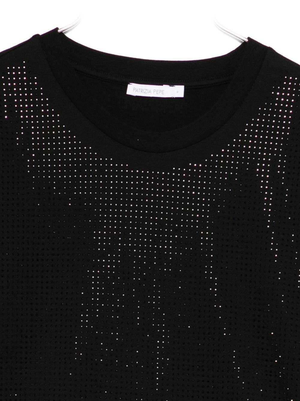 Realizzata in cotone, mezza manica, girocollo, decorazione in strass, 100% cotone