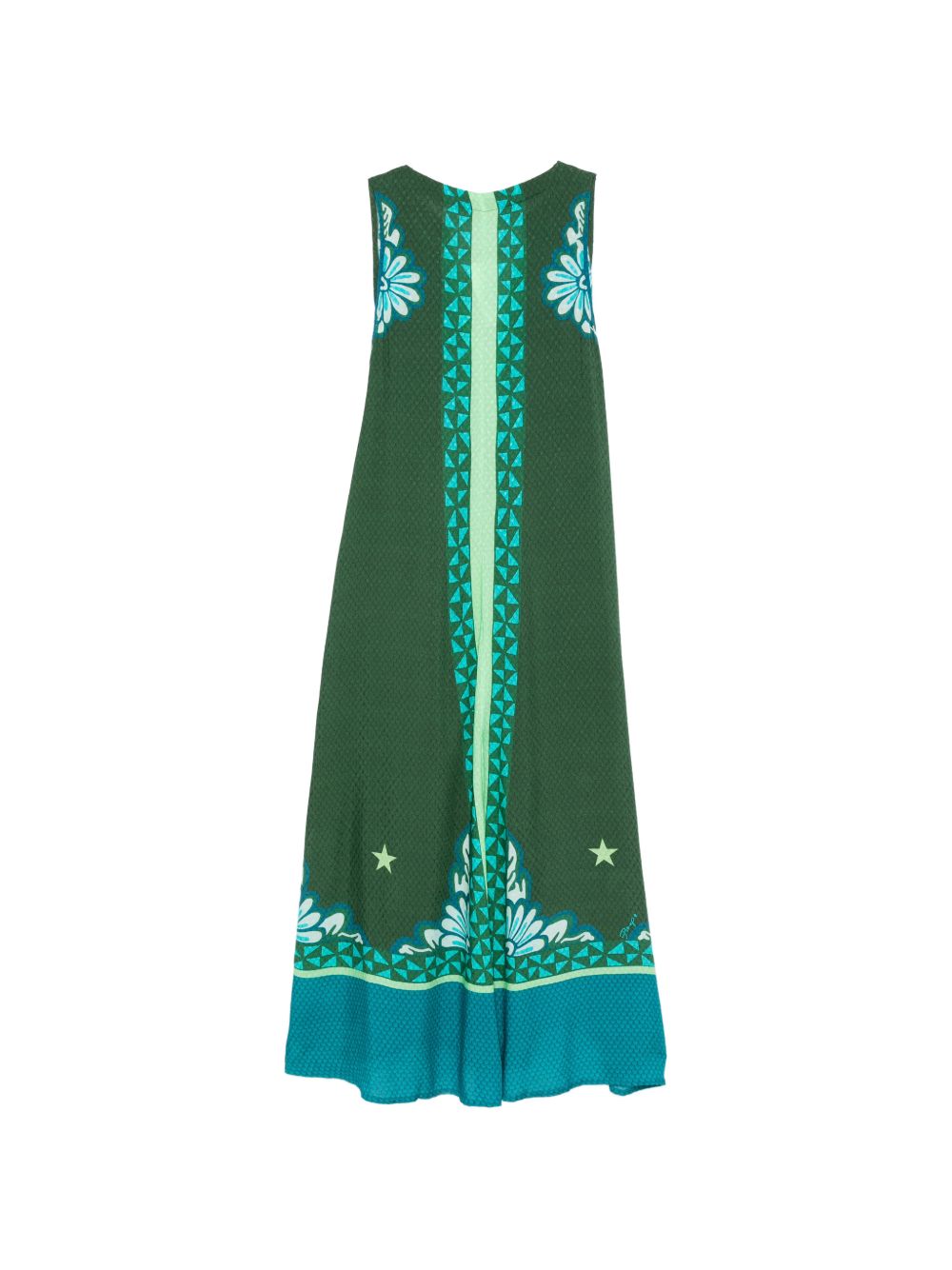 Abito lungo donna Pin-Up Stars stampa tartaruga verde