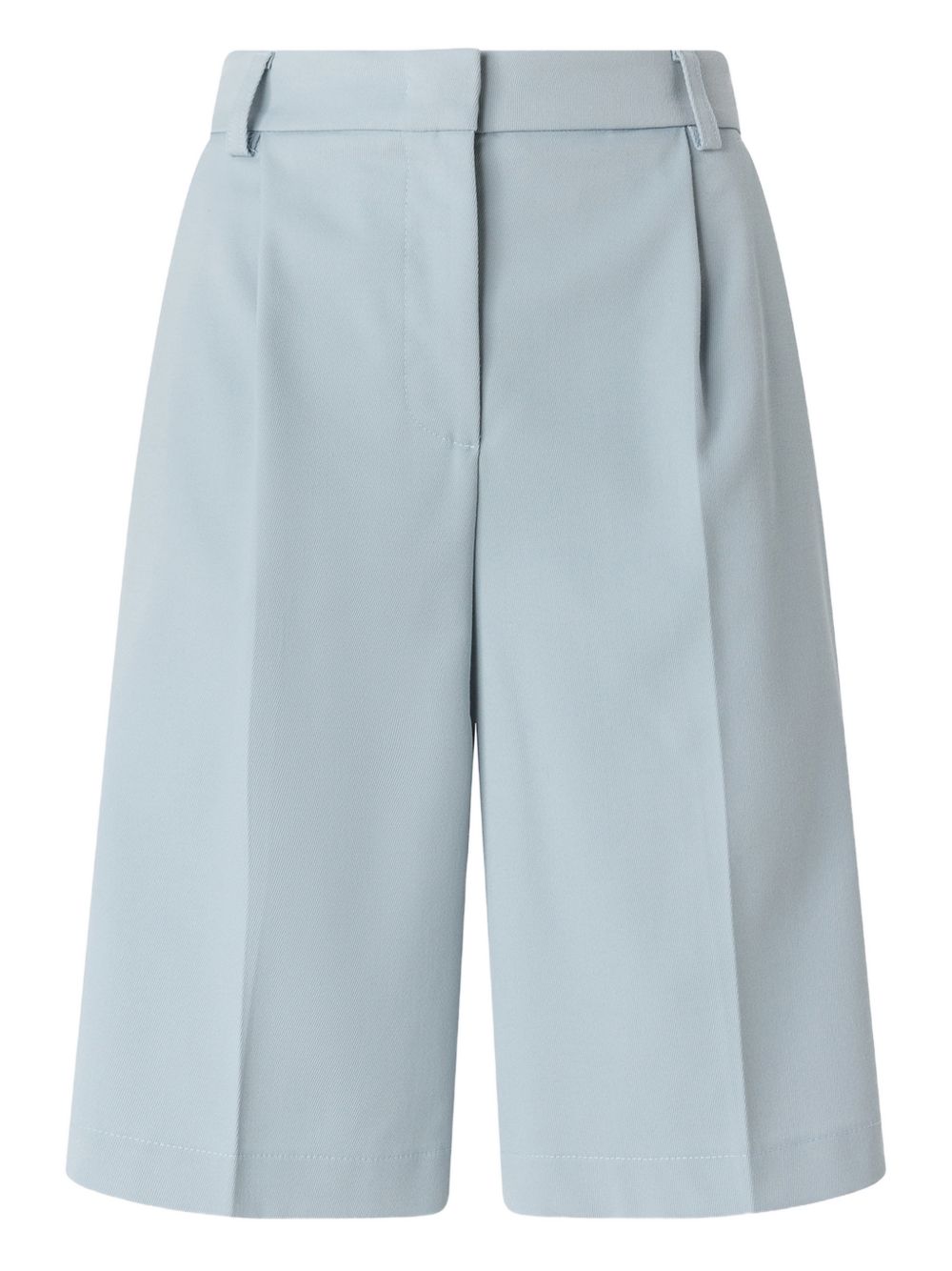 Realizzato in misto poliestere, due tasche laterali aperte, due tasche dietro a filetto con bottone, piega stirata davanti, chiusura davanti con cerniera nascosta, logo ricamato dietro.
