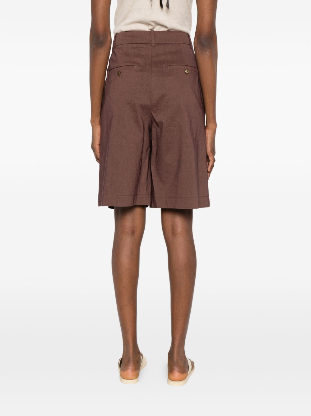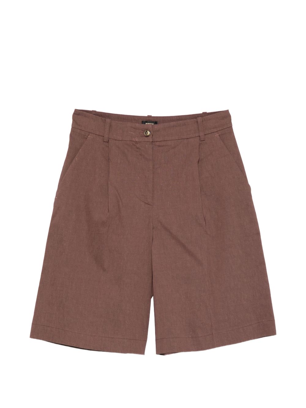 Berrmuda Pinko in lino stretch color marrone, caratterizzato da linea pulita e vestibilità confortevole.
