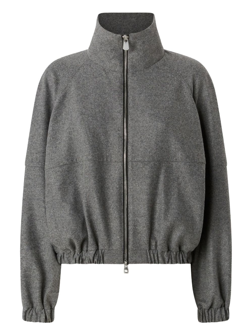 realizzato in flanella di jersey di misto lana tinto in filo, chiusura frontale con zip a doppio cursore, collo in piedi, tasche laterali, orlo e polsini elasticizzati, 66% poliestere, 29% lana, 5% elastan, fodera 100% poliestere