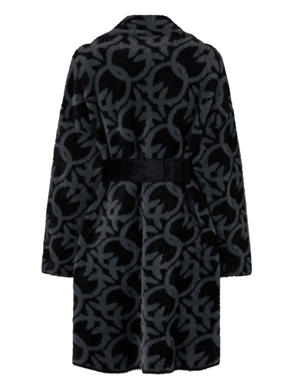 realizzato in morbido tessuto aspen con stampa all over, bottoni in metallo decorato, cintura in vita, colletto con revers, 100% nylon