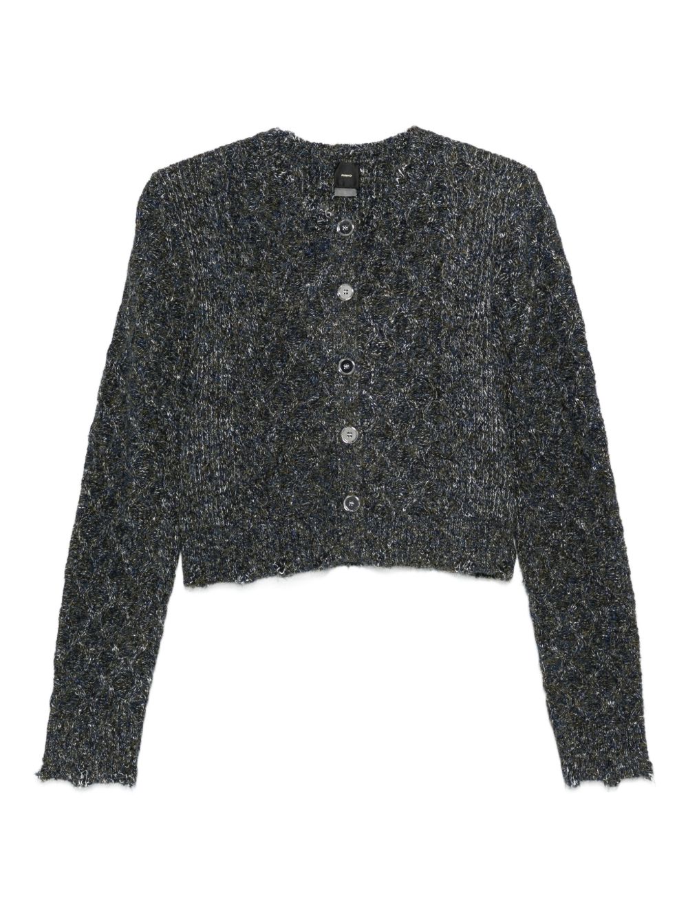 realizzato in maglia con filati di colori diversi, chiusura sul davanti con bottoni, orlo e polsini con orlo sfrangiato, 85% poliestere, 13% acrilico, 2% elastan