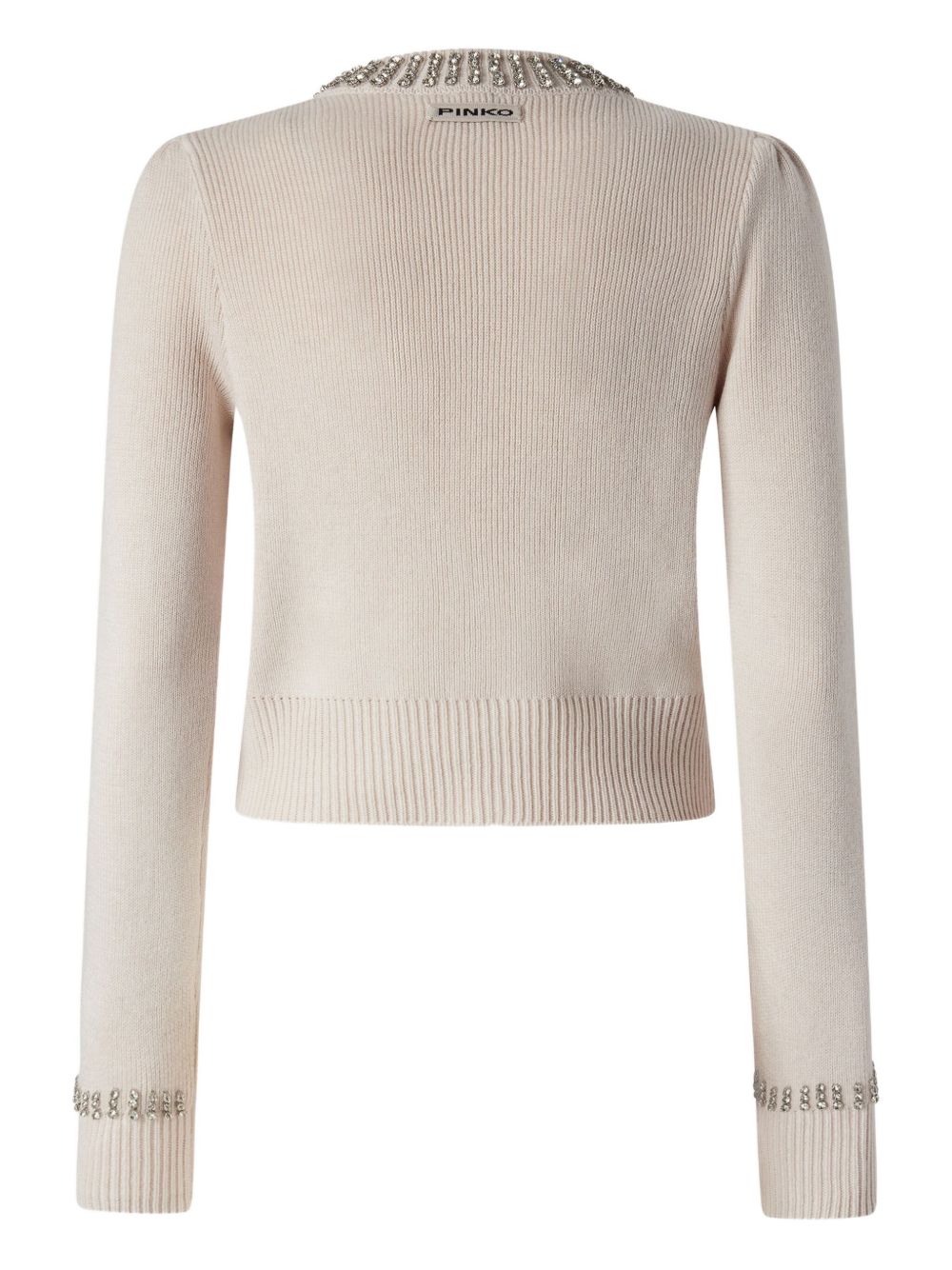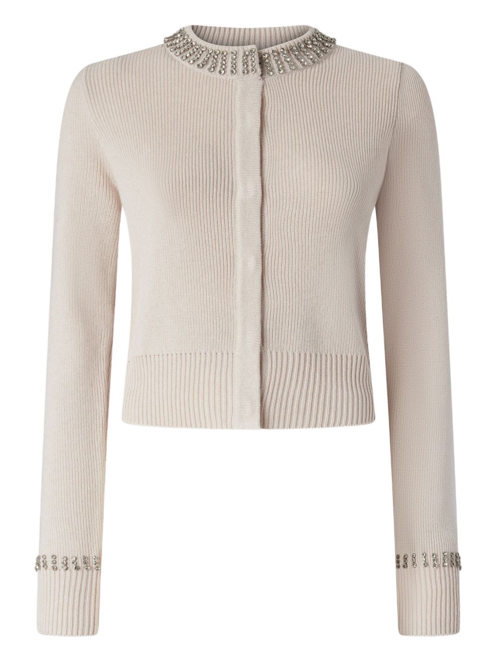 Realizzato in misto nylon, chiusura frontale con abbottonatura nascosta, applicazione strass, patch logo dietro.