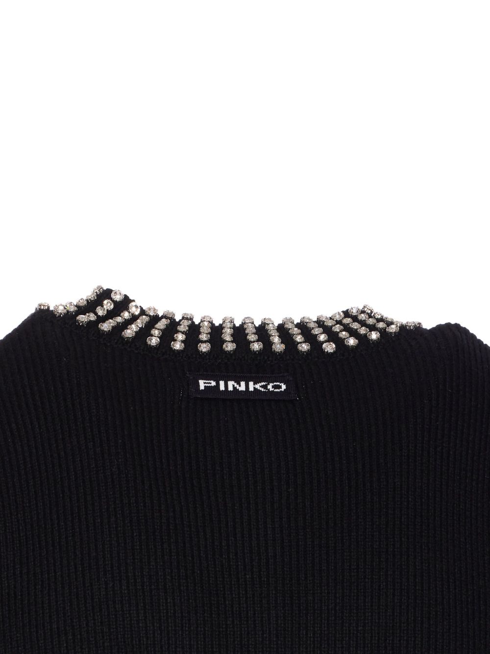 realizzata in misto lana, orlo e polsini lavorati a coste, chiusura frontale con abbottonatura nascosta, maniche lunghe, dettaglio strass su collo e polsi, dettaglio logo dietro, design crop, vestibilità slim.