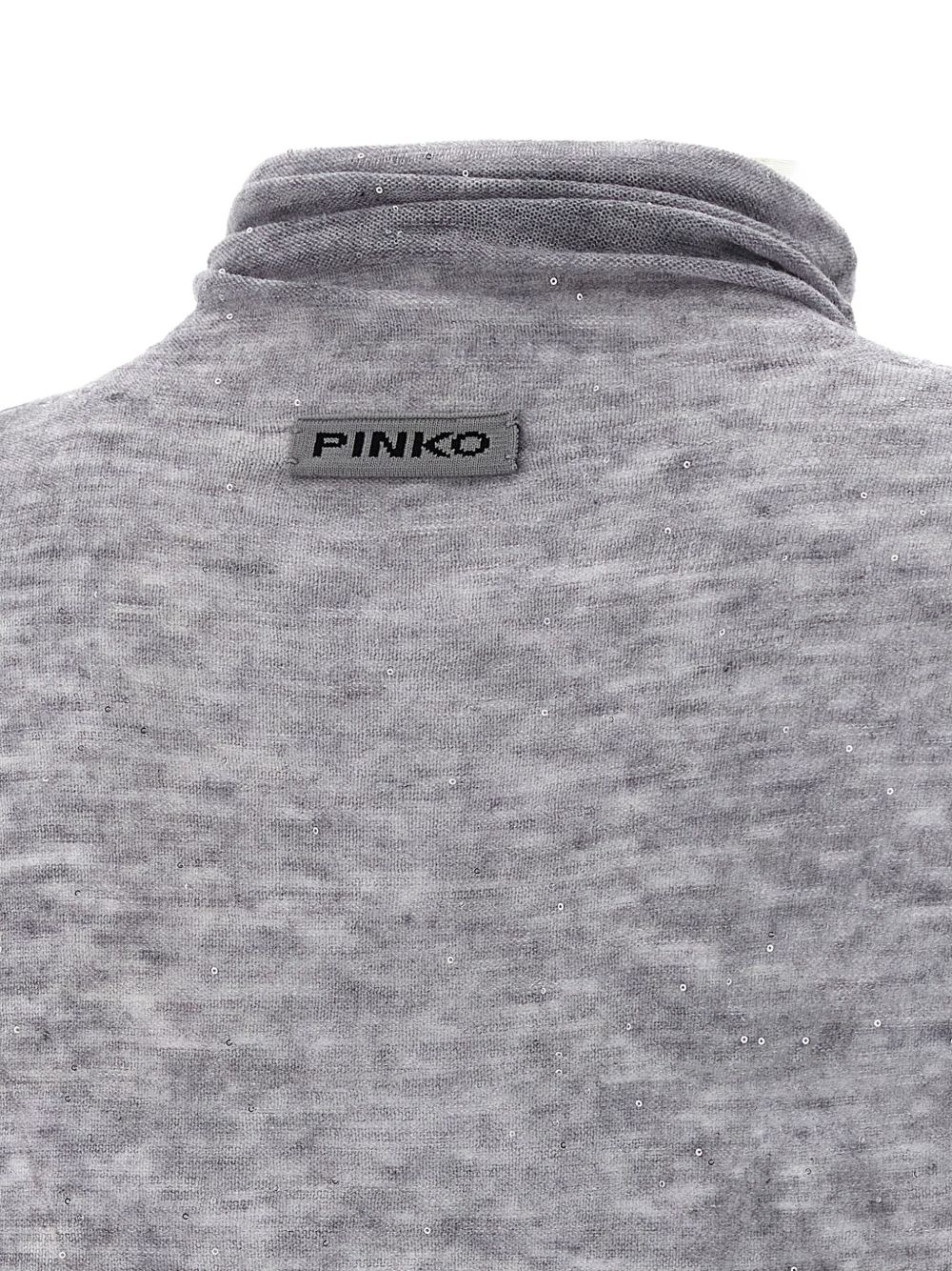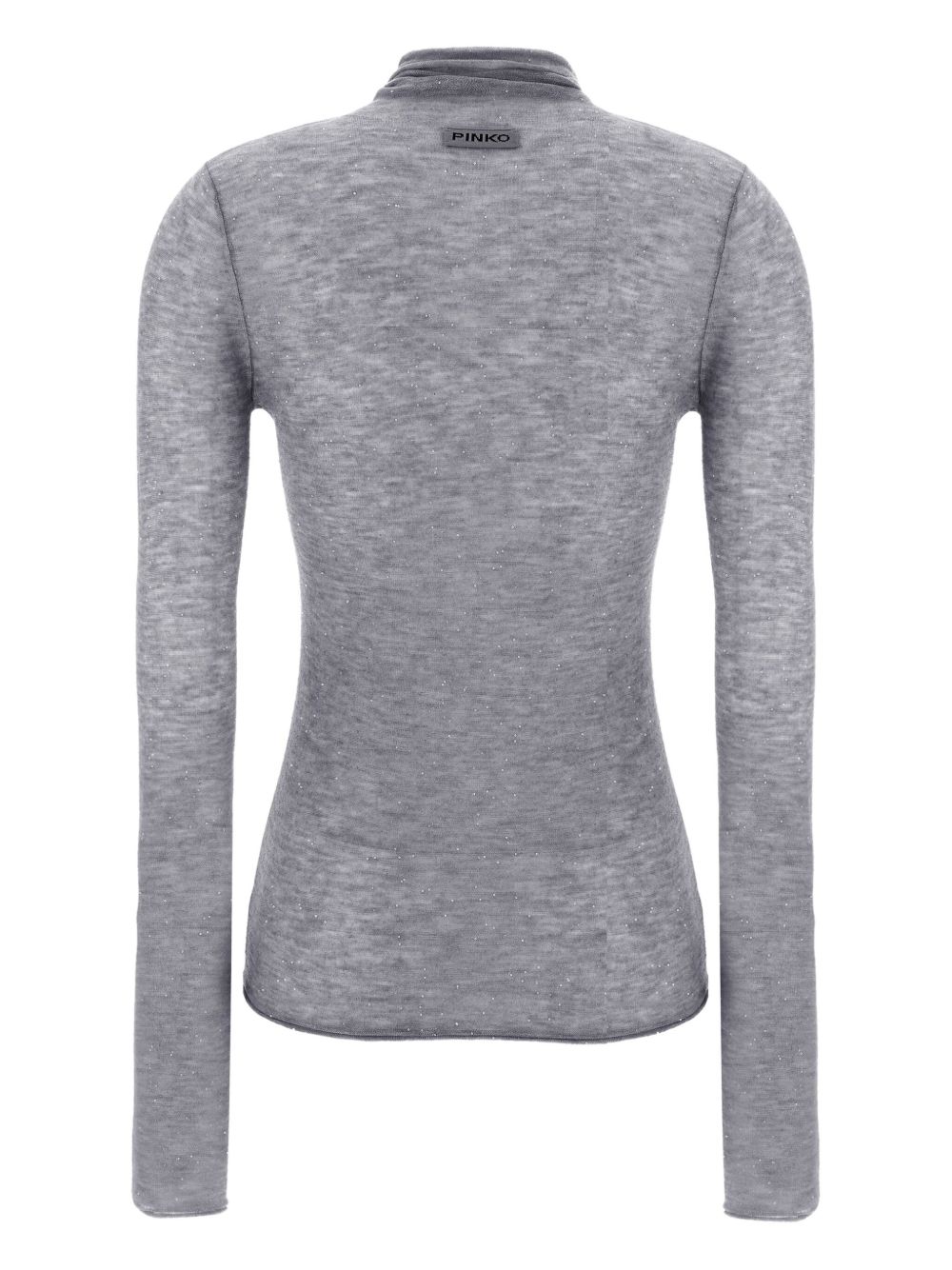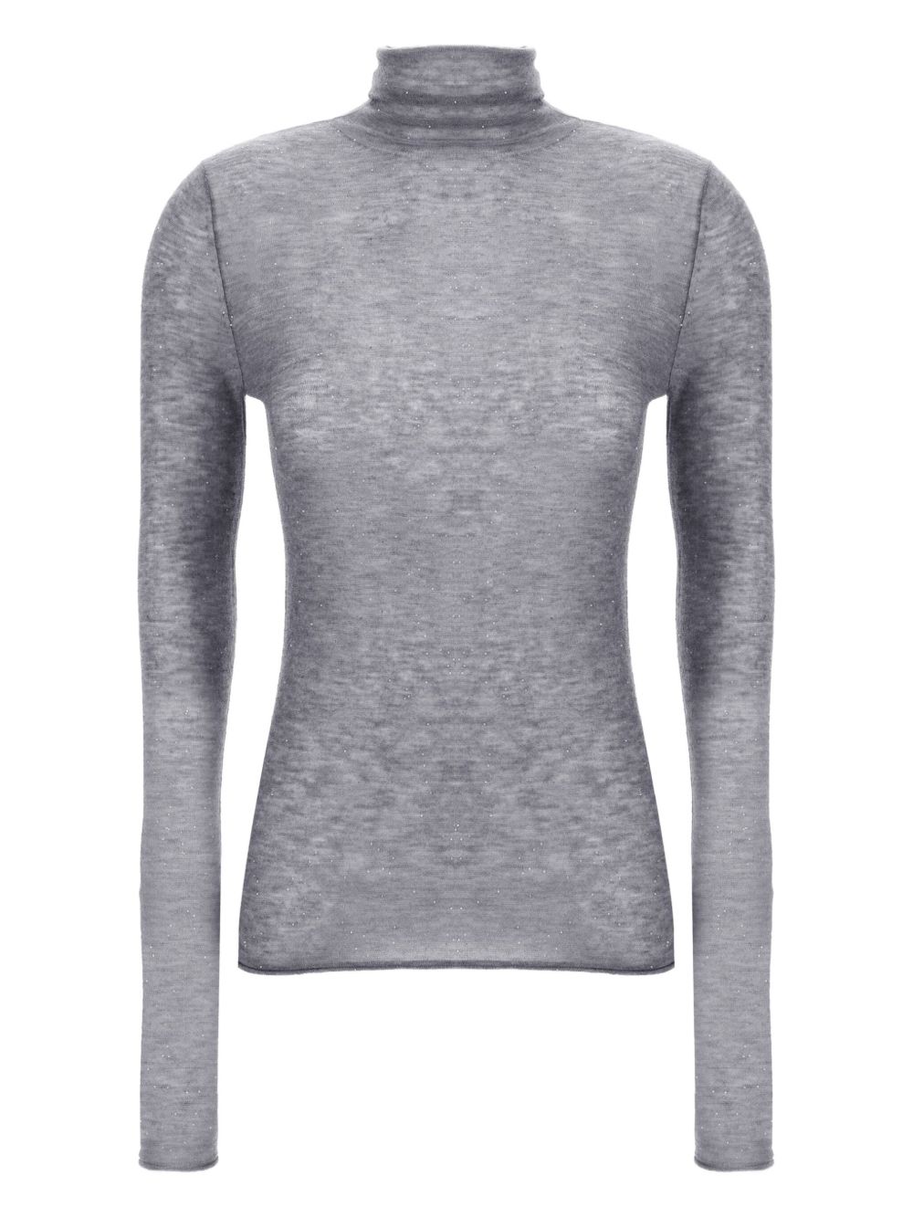 realizzata in misto lana semistrasparente, collo alto, micropaillettes inserite nel filo, design aderente, 98% lana, 2% poliestere