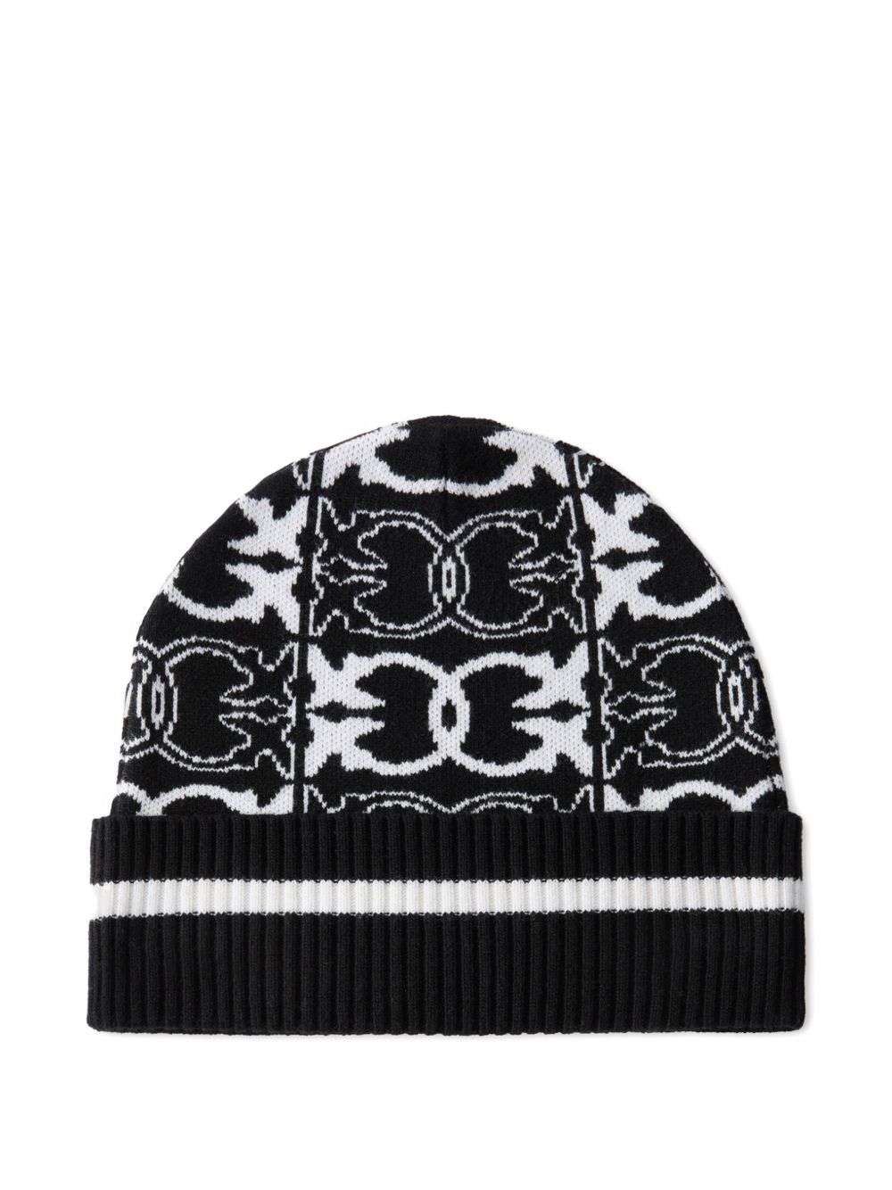 realizzata in maglia di misto viscosa con logo jacquard, risvolto lavorato a coste, 33% viscosa, 23% nylon, 20% cotone, 20% lana, 4% cashmere