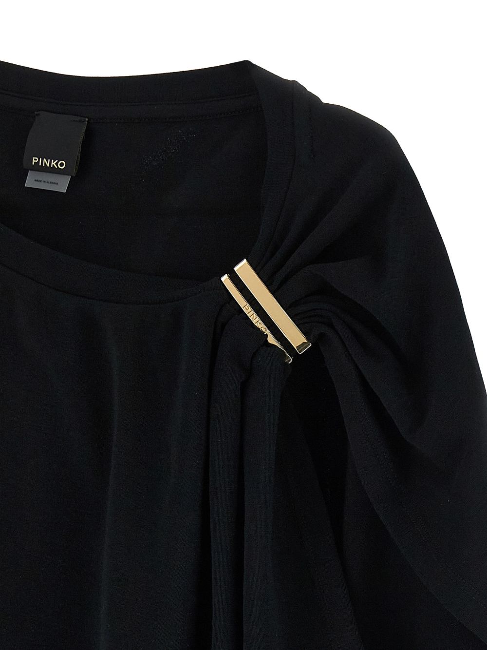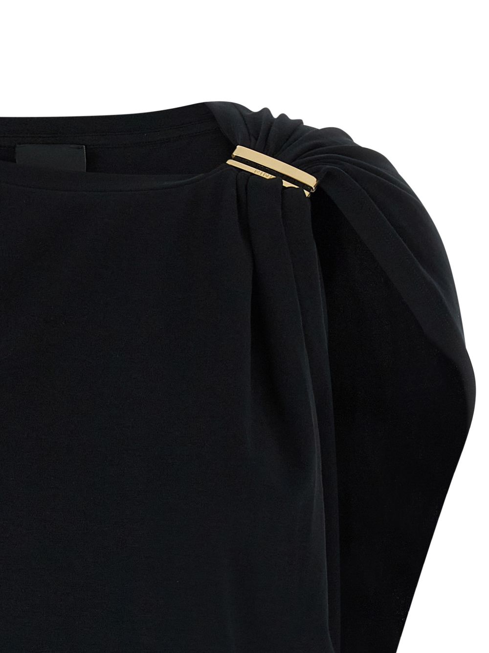 realizzata in cotone interlock stretch, effetto lucente, design monospalla, 85% cotone, 15% elastan