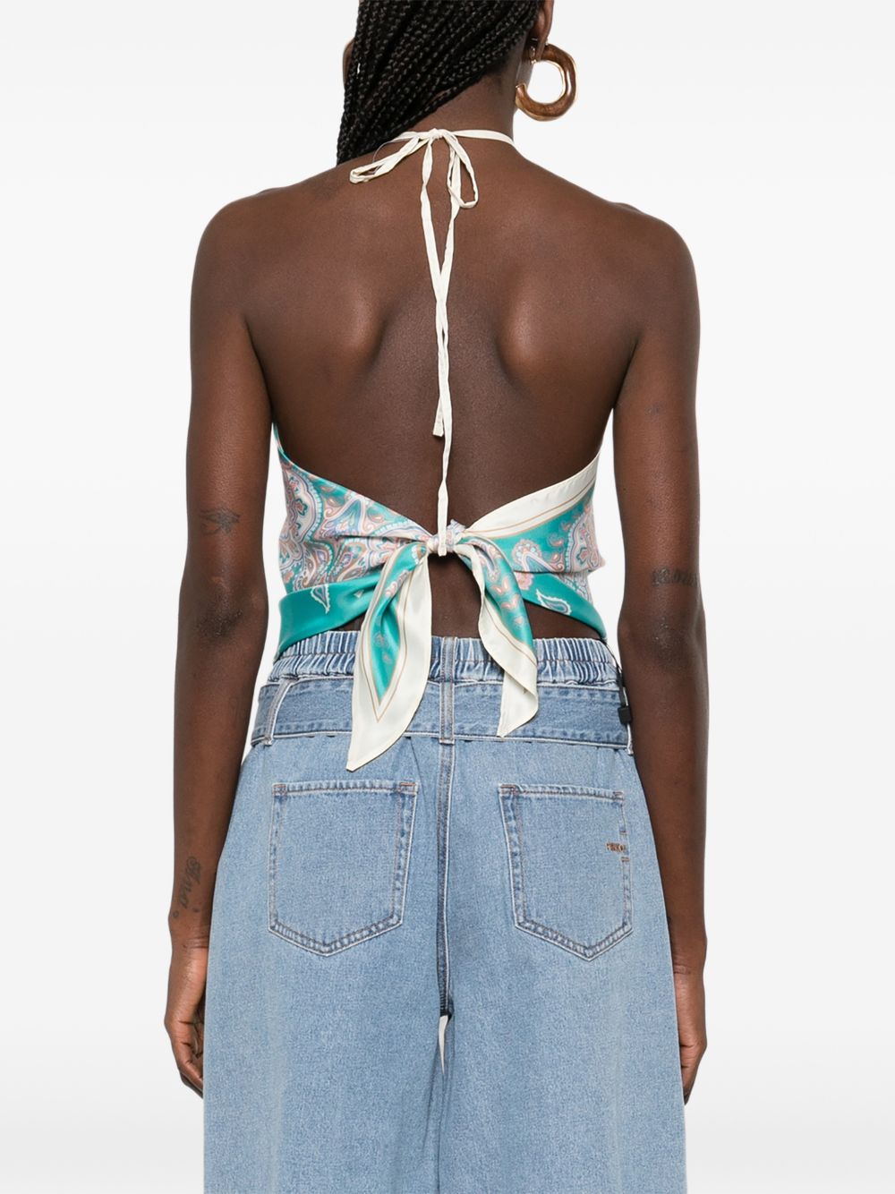 Realizzata in misto viscosa, spallacci fini, chiusura dietro con nodo, stampa fantasia all-over, 65% viscosa, 35% seta