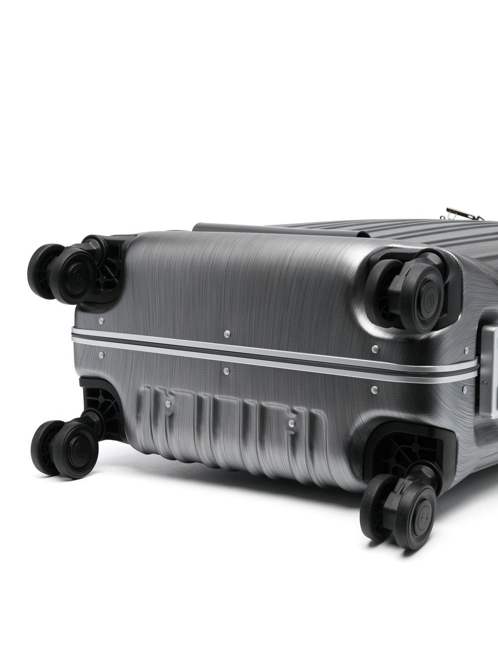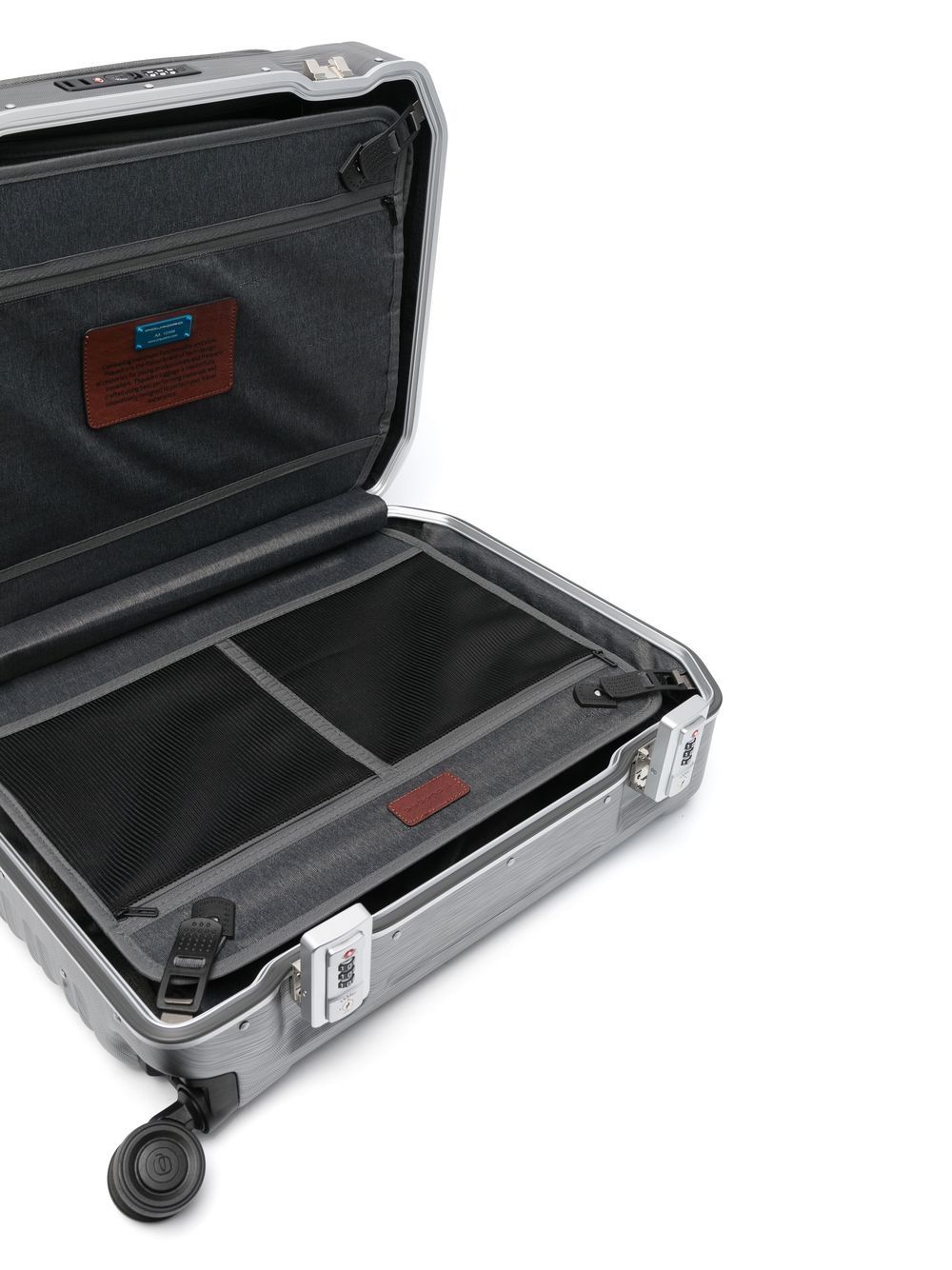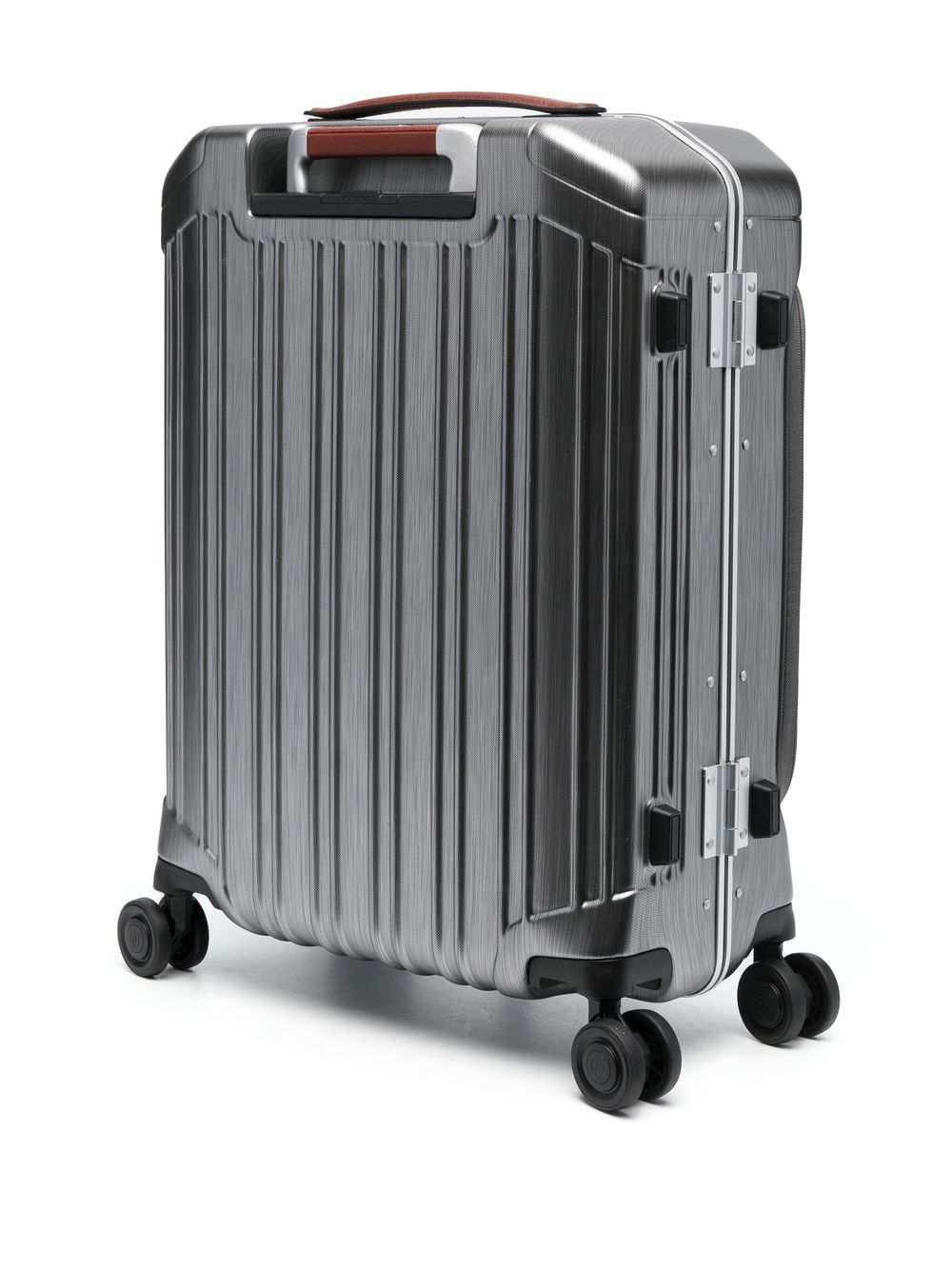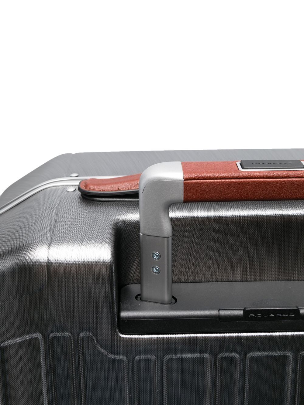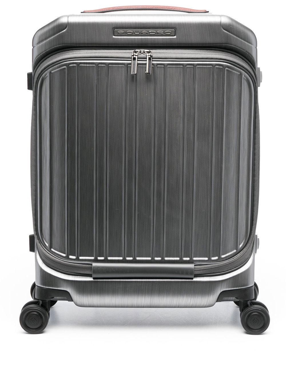 design rigido, realizzato in policarbonato, porta Ipad Pro 12.9", può contenere notebook da 15.6", posizione porta pc esterno, quattro ruote, manici a scomparsa, chiusura doppia con lucchetto TSA con Type C e USB, trolley system a due aste, tasca portaoggetti fissa, cinghie fermabiti, 40 x 55 x 23(cm), 40 Lt, 2.956 g