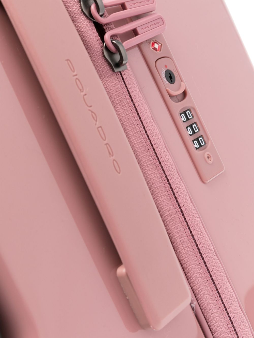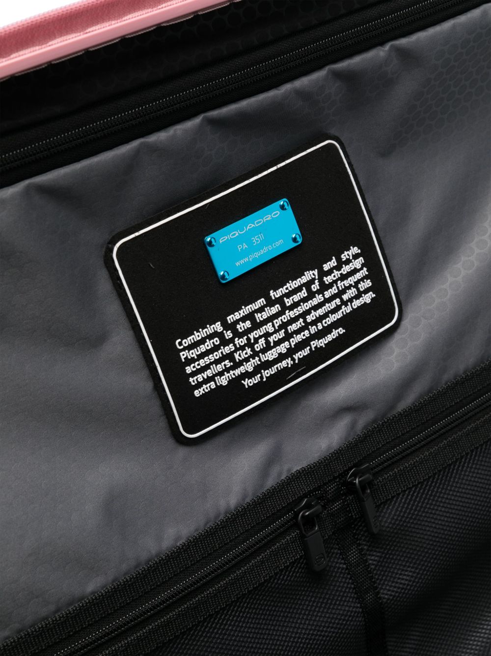 Trolley medio Piquadro con struttura rigida e colore distintivo, perfetto per chi desidera un bagaglio funzionale ma con personalità.