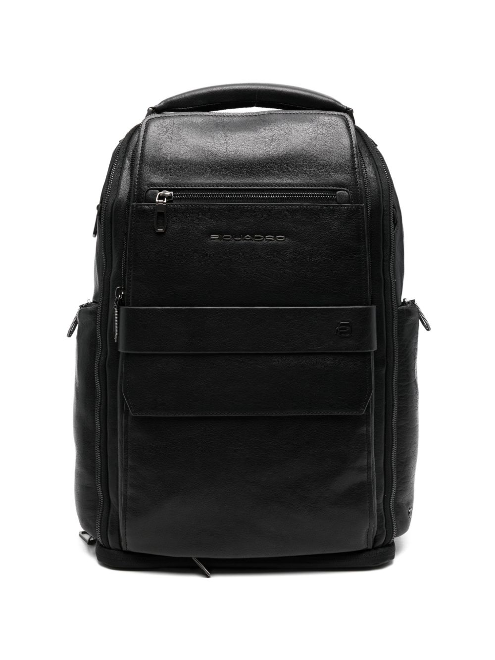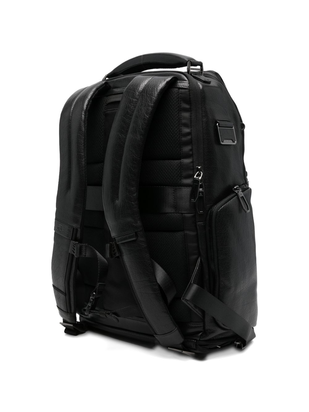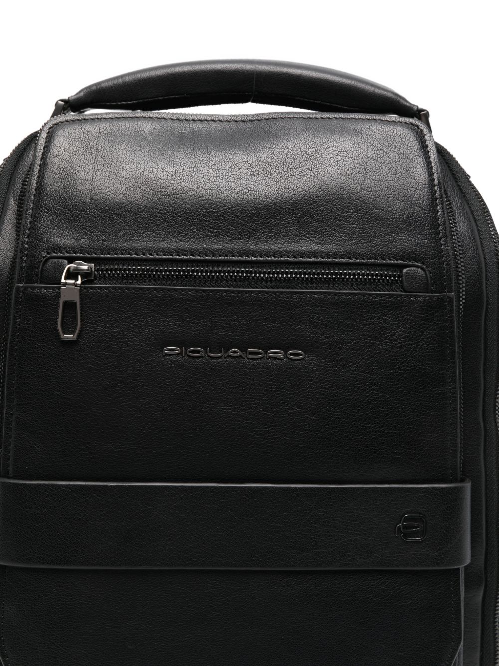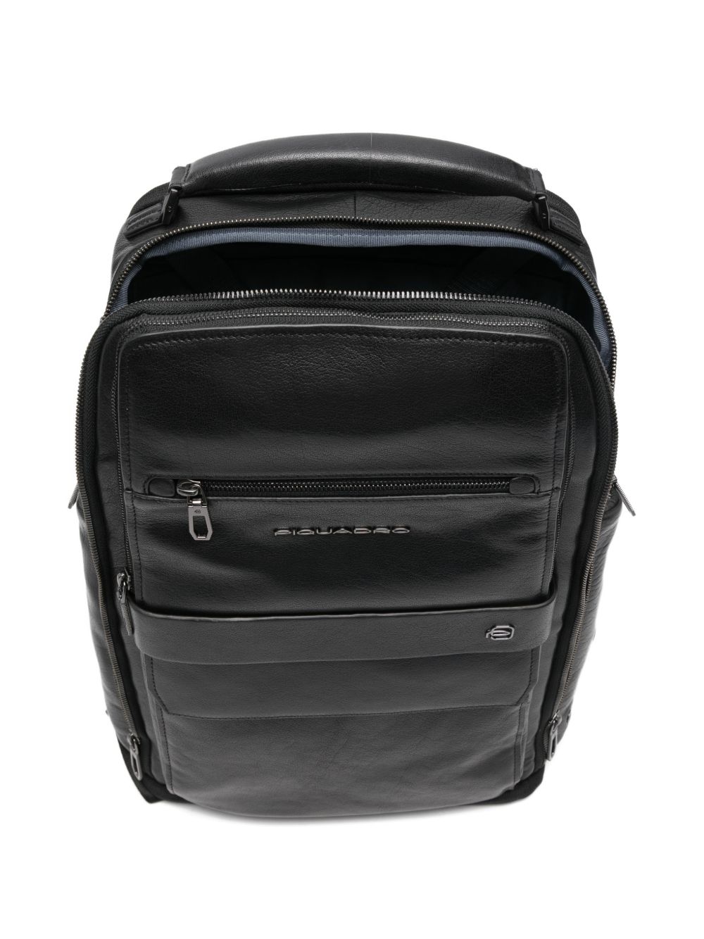 Realizzato in pelle, logo davanti, attacco con rete per caschetto da bici, porta scarpe, scomparti con chiusura a zip, spallacci regolabili, manico fisso, aggancio per trolley, porta occhiali, aggancio per torcia, tasca per power bank AirPods e per ricarica ad induzione, scomparto per pc fino a 15"6', fodera interna in poliestere con cinghie ferma abiti, 30 litri, 35 x 44 x 17 (cm)