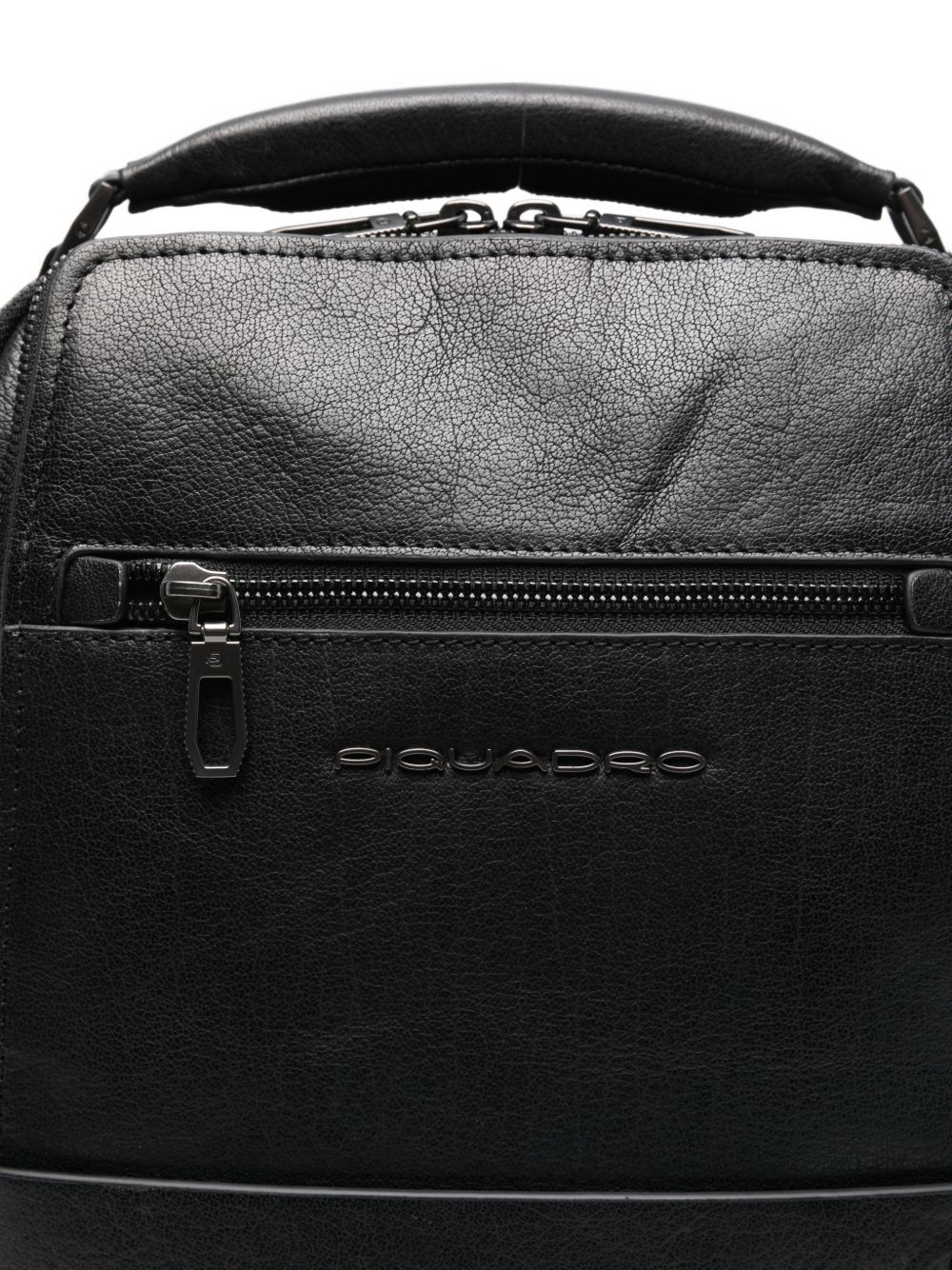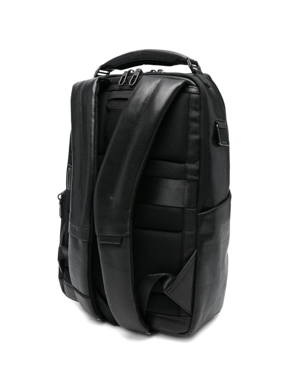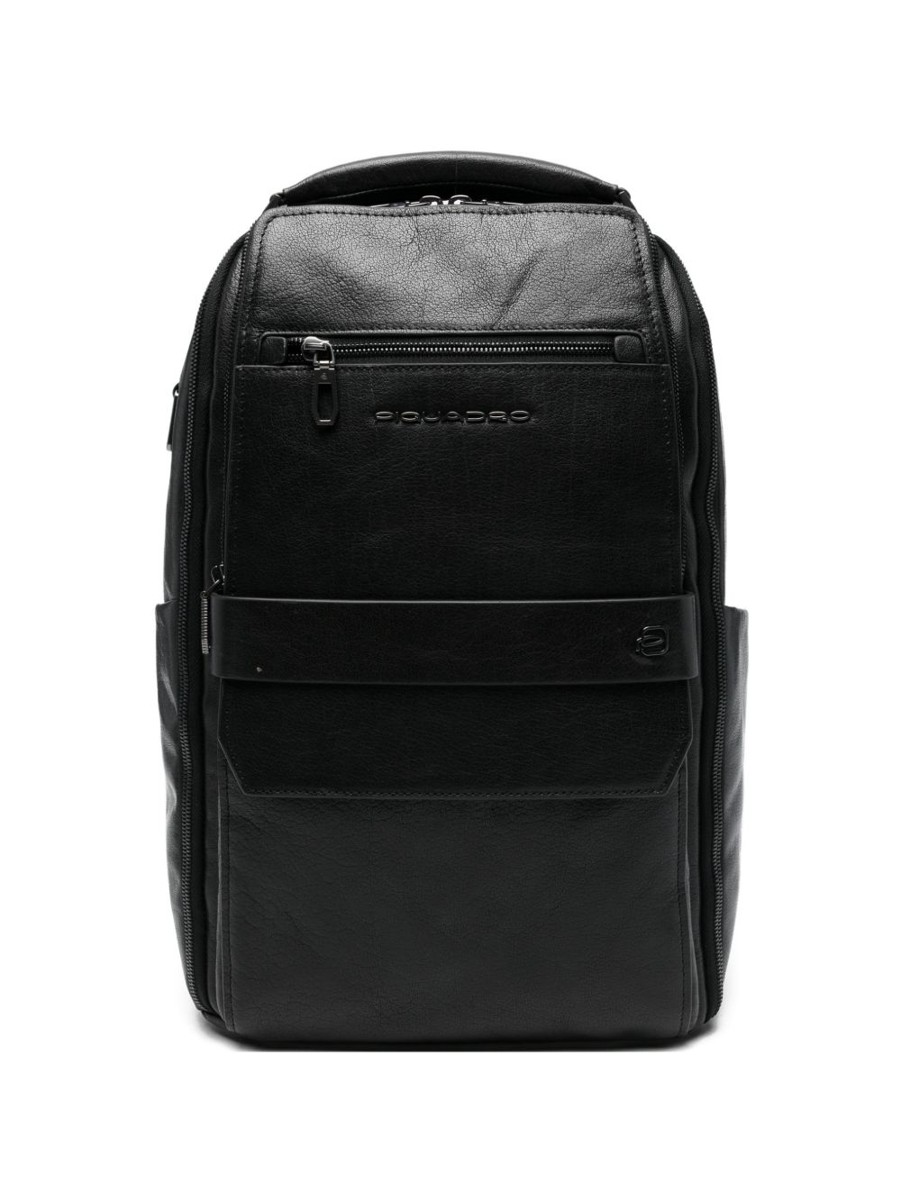 Realizzato in pelle, logo davanti, scomparti con chiusura a zip, spallacci regolabili, manico fisso, aggancio per trolley, porta occhiali, aggancio per torcia, tasca per power bank AirPods e per ricarica ad induzione, scomparto per pc fino a 14", fodera interna in poliestere con cinghie ferma abiti, 18 litri, 29 x 40,5 x 15 (cm)