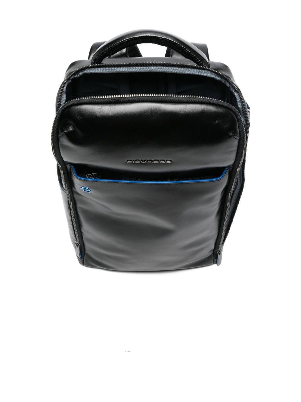 realizzato in pelle, porta pc da 14", porta Ipad 10.2" Air 10.9" Pro 11", scomparto superiore con zip, tasca frontale aperta, cinghia per aggancio al trolley, tasca porta AirPods, tasche per ricarica ad induzione e power bank, tracolle regolabili, tasca laterale porta bottiglia, tag personalizzabile, logo davanti in metallo, capacità 13 litri, 29 x 38 x 13 (cm), peso 1003 gr