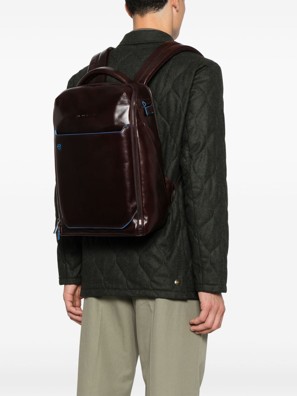 realizzato in vera pelle, manico singolo, possibilità di aggancio al trolley, spallacci regolabili, tasca con shock absorber, tasca porta Airpods, può contenere pc fino a 14 pollici, lunghezza 29 cm, altezza 39 cm, profondità 17 cm, peso 1393 gr
