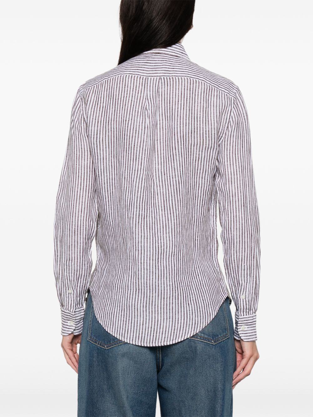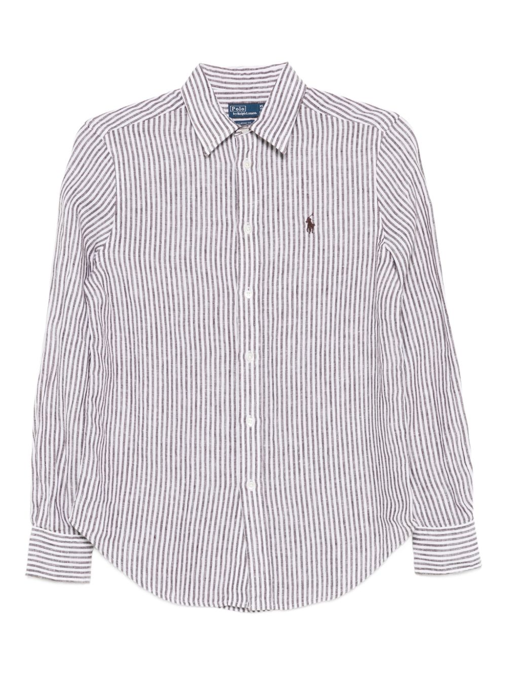 design con righe verticali, colletto classico, logo ricamato sul petto, orlo curvo
