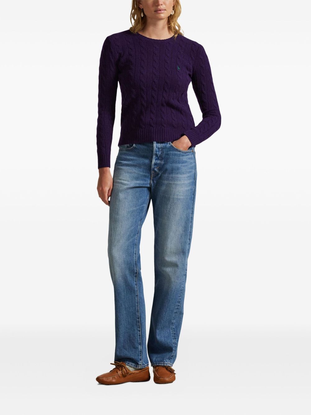 realizzato in misto lana, lavorato a trecce, logo ricamato sul petto, girocollo, bordi a coste, 80% lana, 20% cashmere