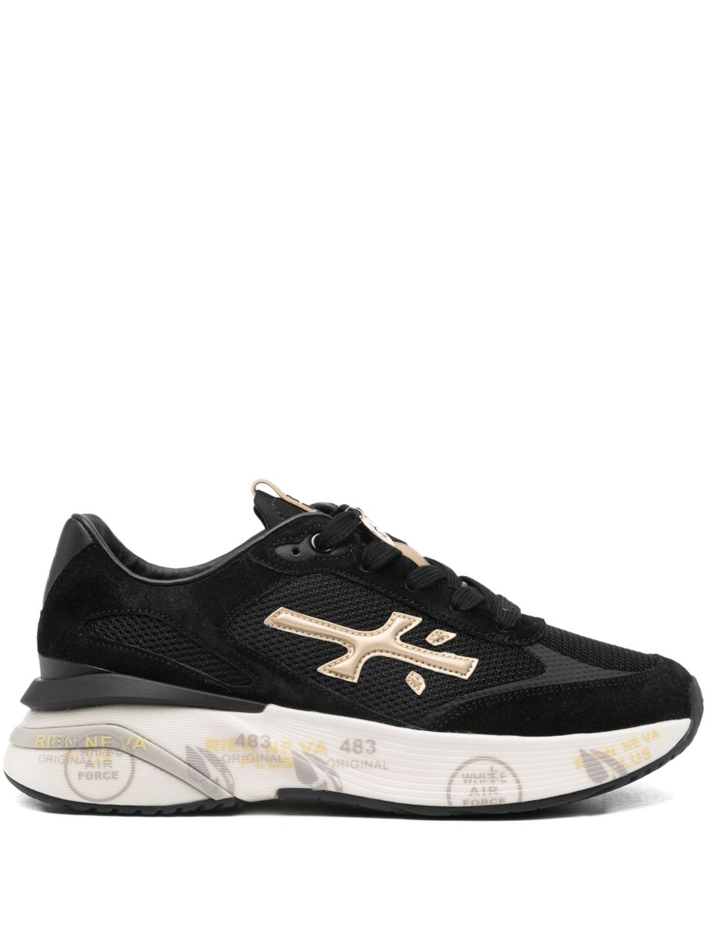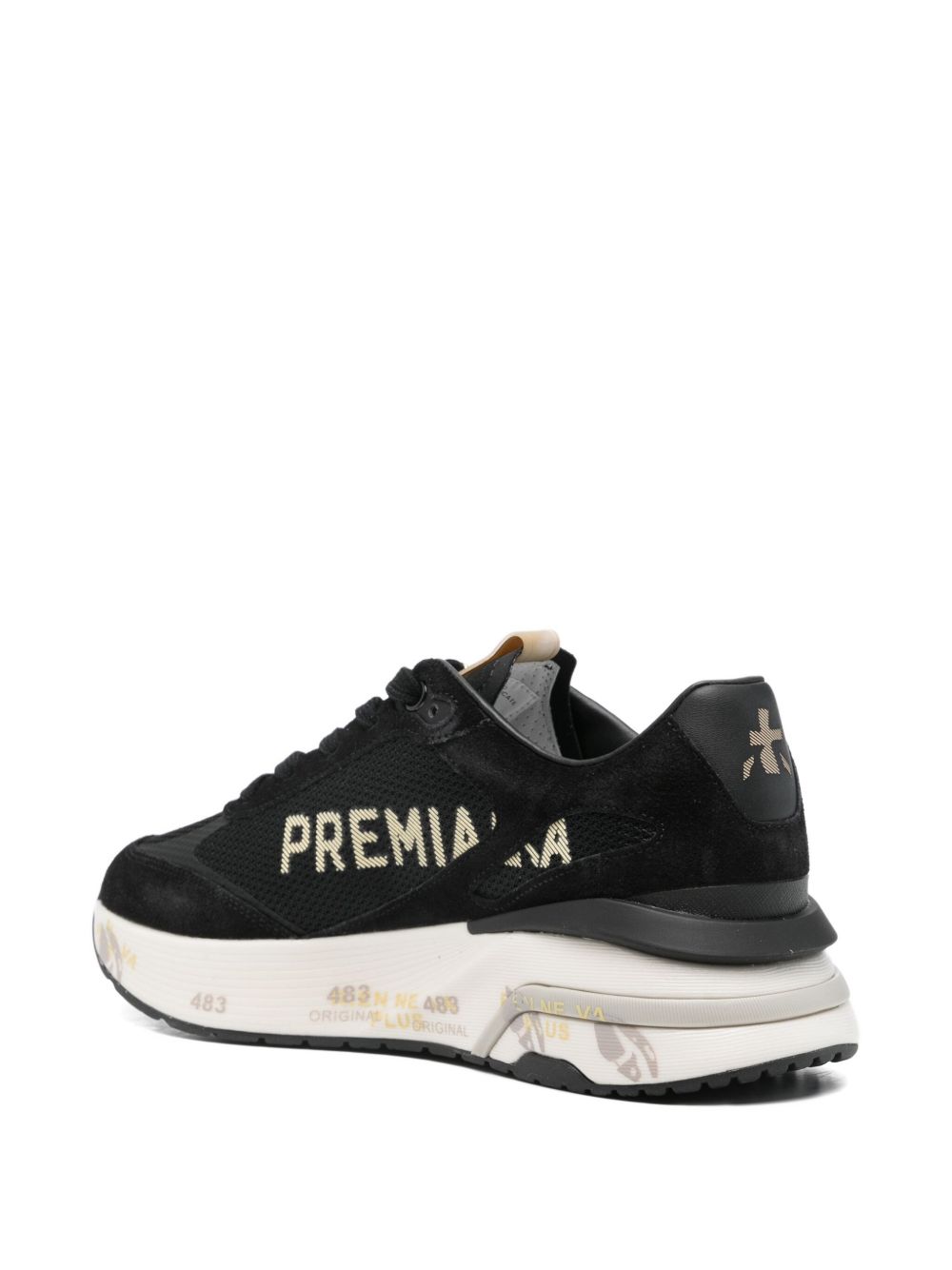 tomaia realizzata in vera pelle, dettagli in suede, logo laterale, suola in gomma logata alta 4.2 cm