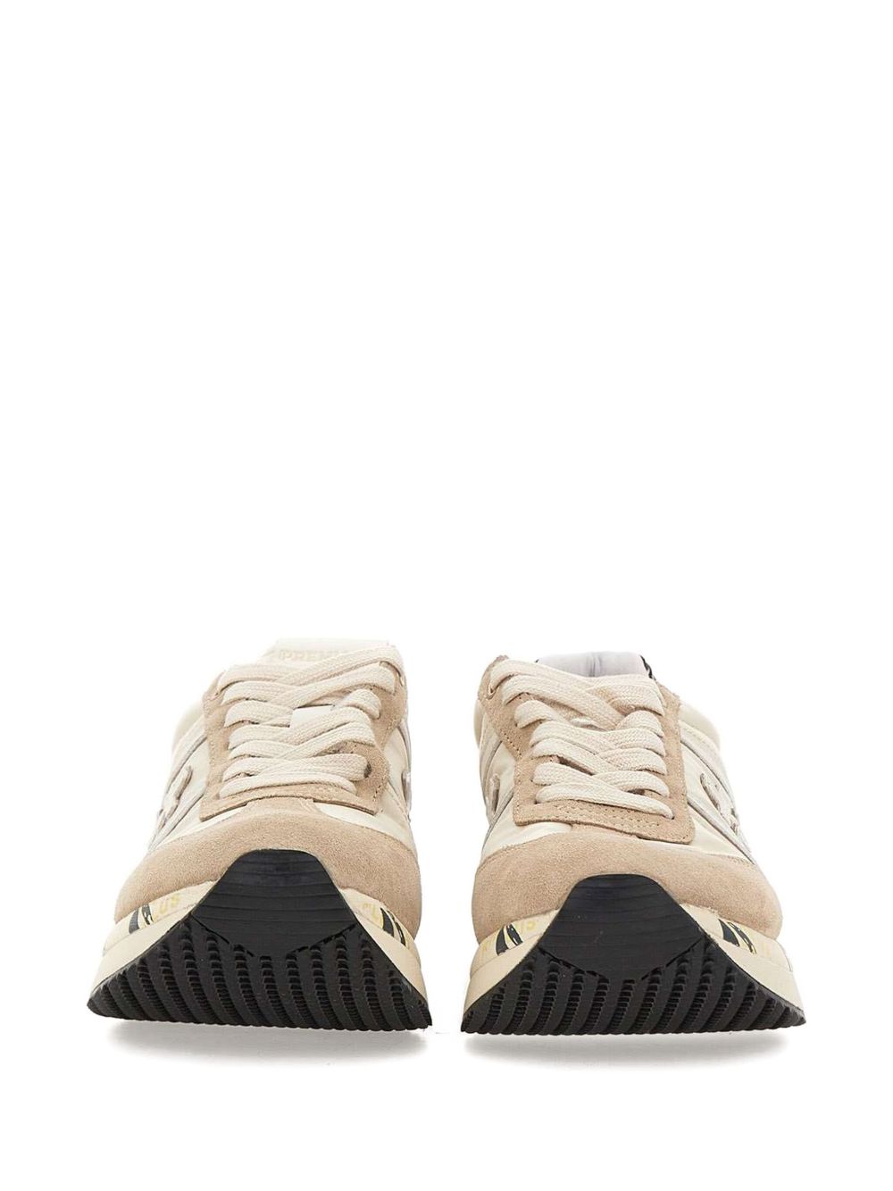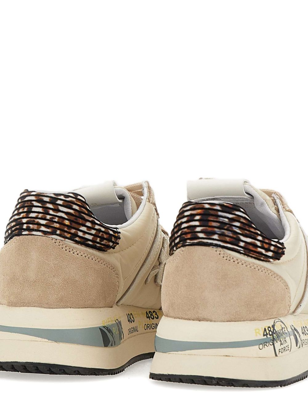 tomaia realizzata in pelle scamosciata e tessuto, logo laterale, stampa animalier dietro, chiusura con lacci, suola in gomma logata