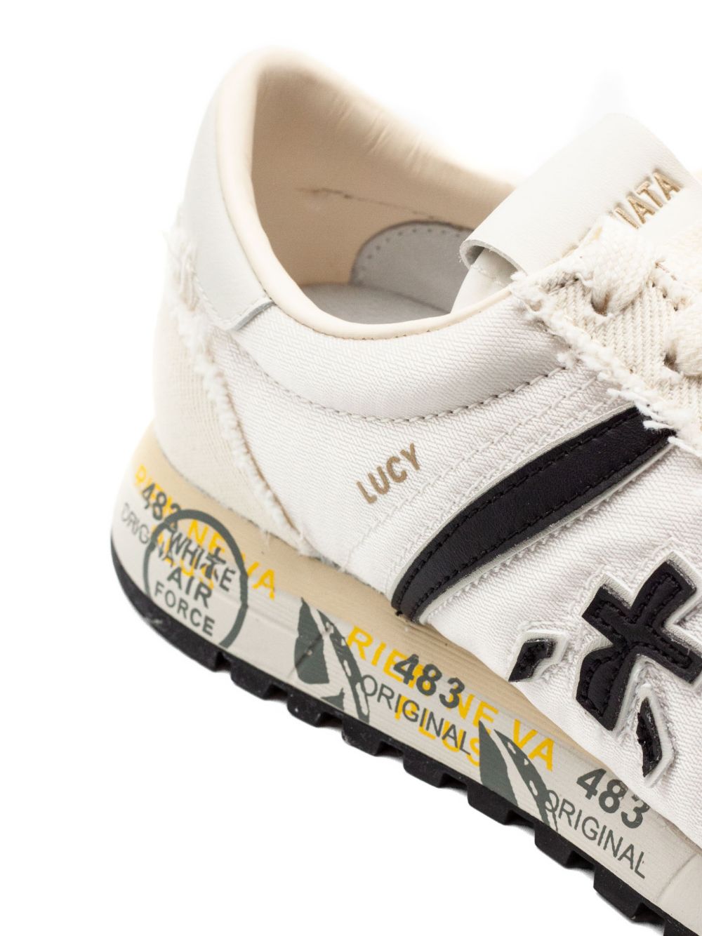 tomaia realizzata in pelle scamosciata e tessuto, logo laterale, chiusura frontale con lacci, suola in gomma logata, altezza suola 3 cm