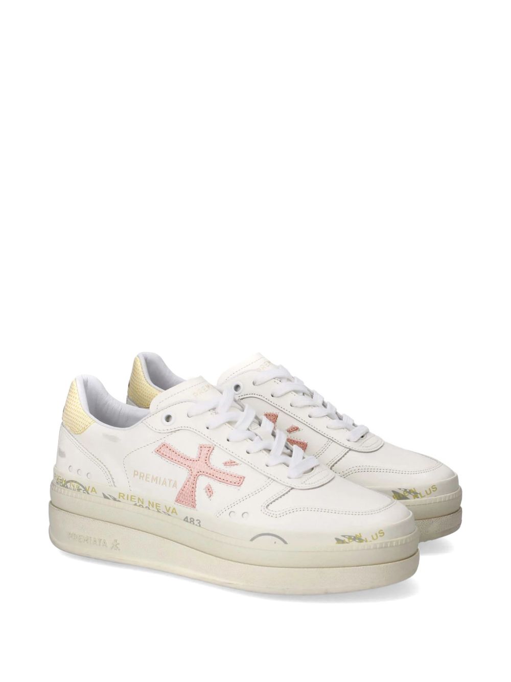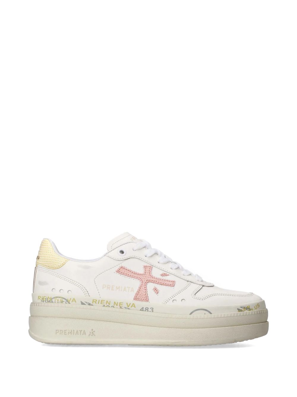 tomaia realizzata in vera pelle, dettaglio logo laterale, talloncino a contrasto, soletta interna, suola alta 4.5 cm