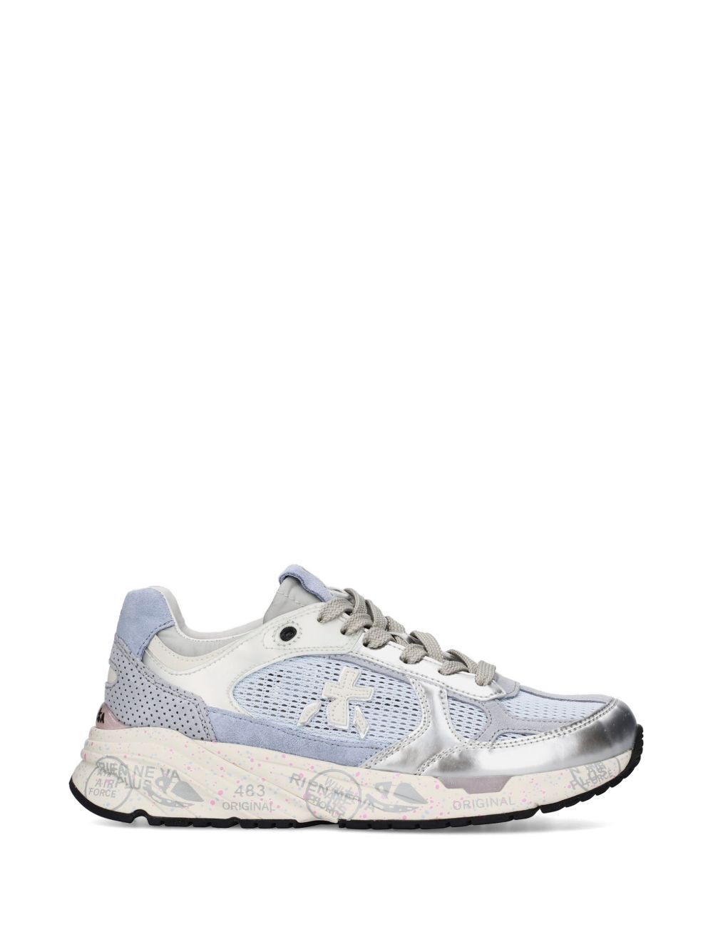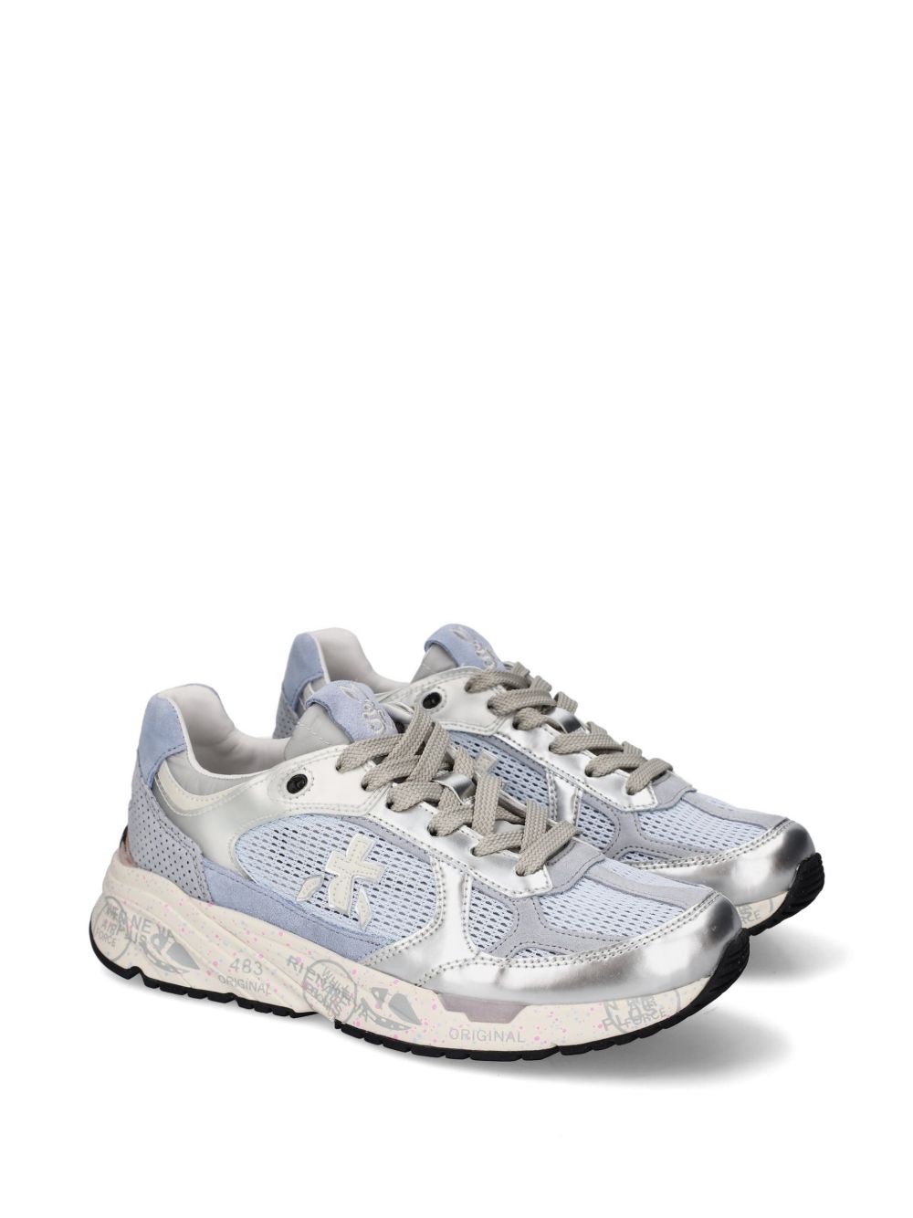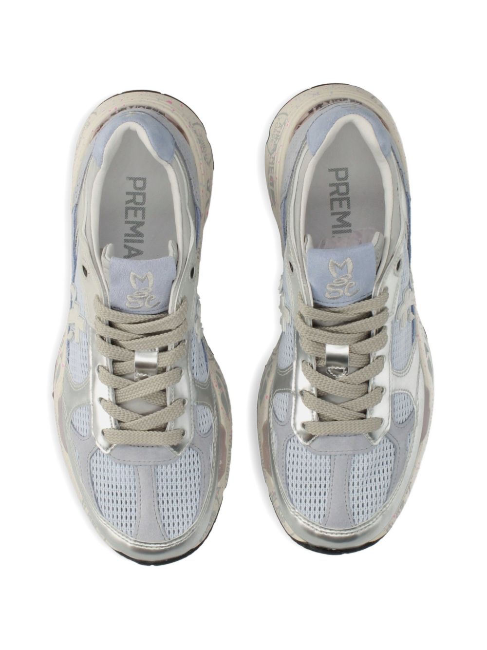 Sneakers Premiata modello Mase da donna in combinazione lilla e argento, caratterizzate da un design moderno e ricco di dettagli.