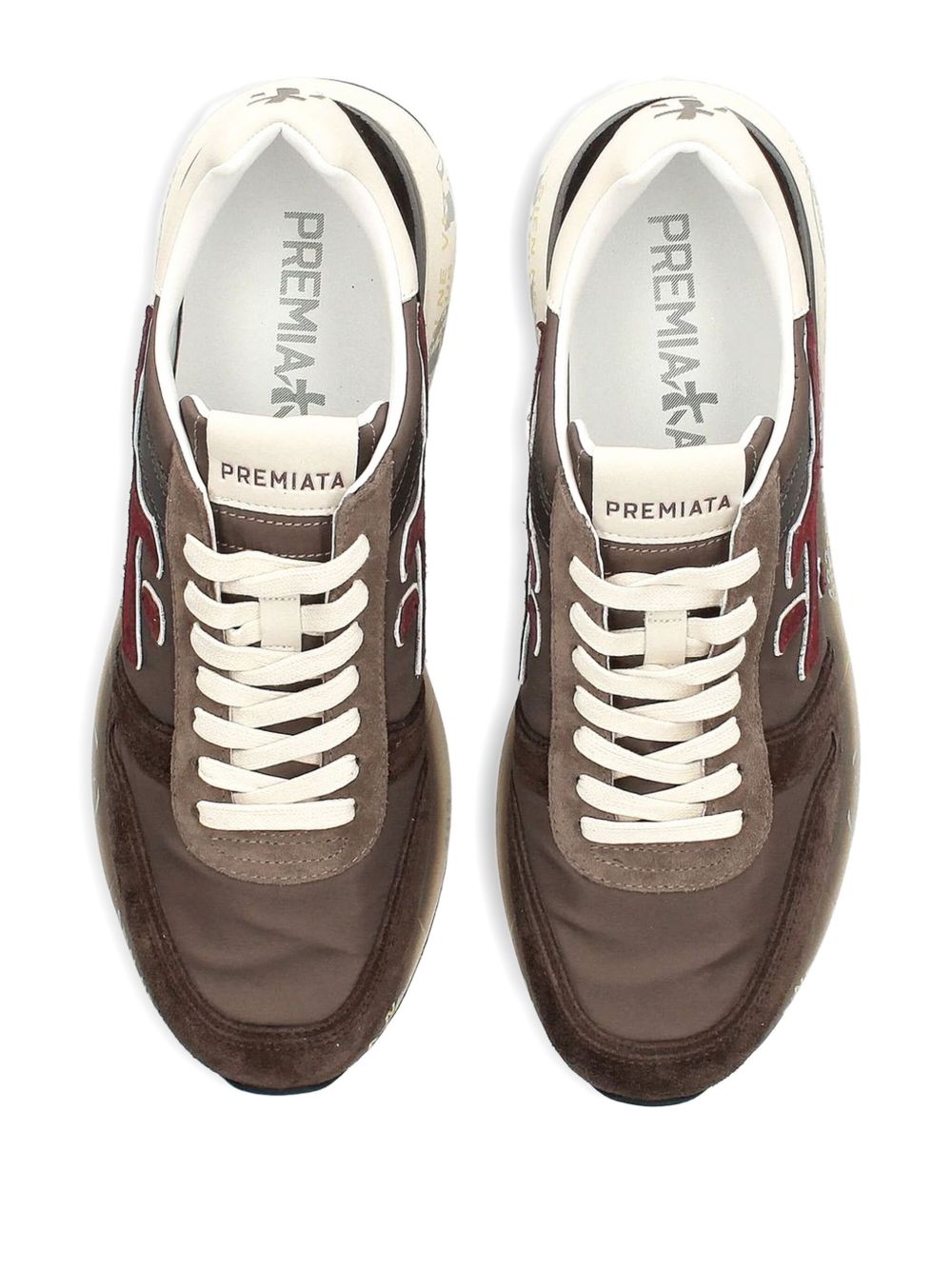 tomaia realizzata in vera pelle, dettagli in suede, logo laterale, suola in gomma logata alta 4.2 cm