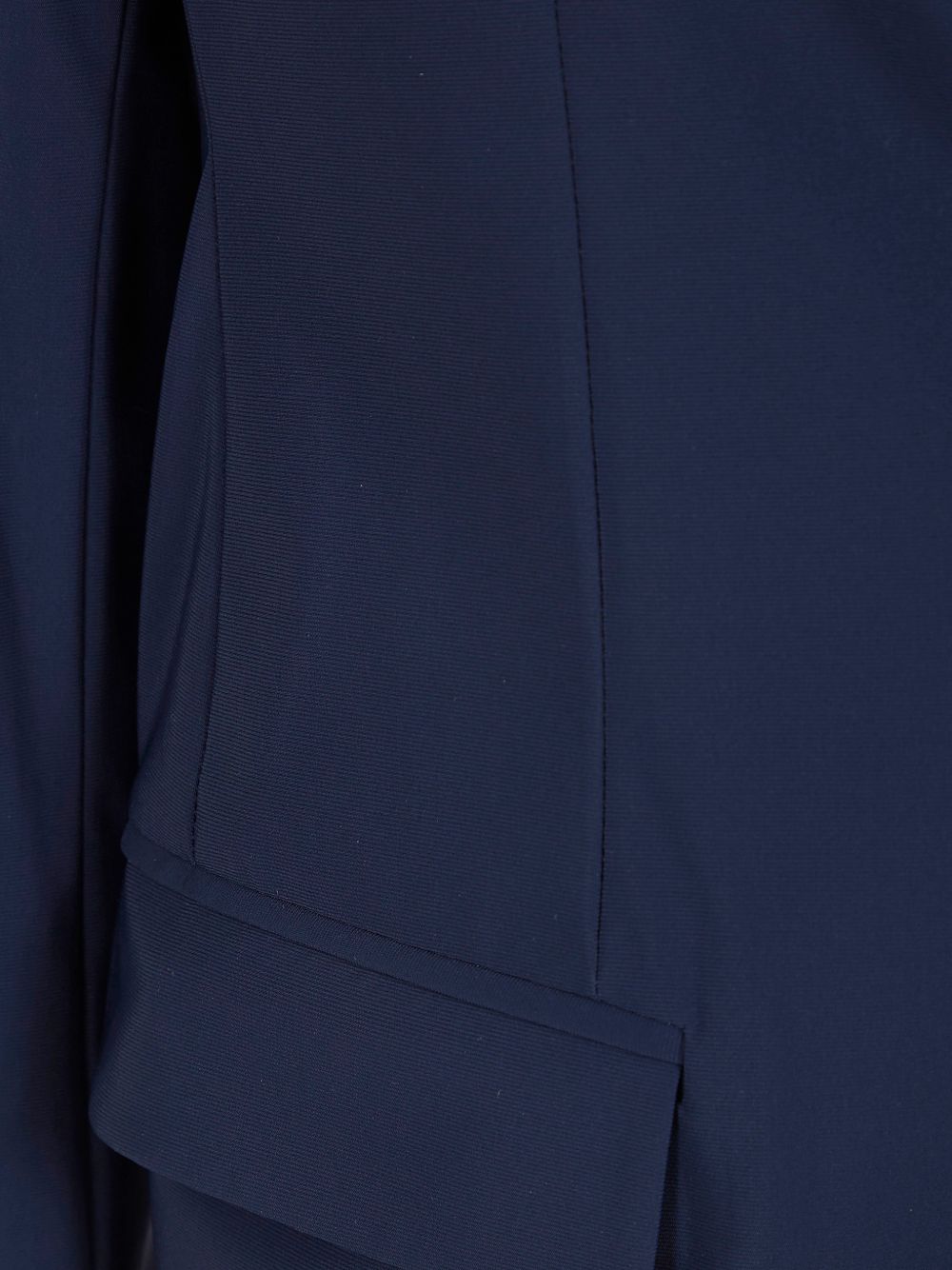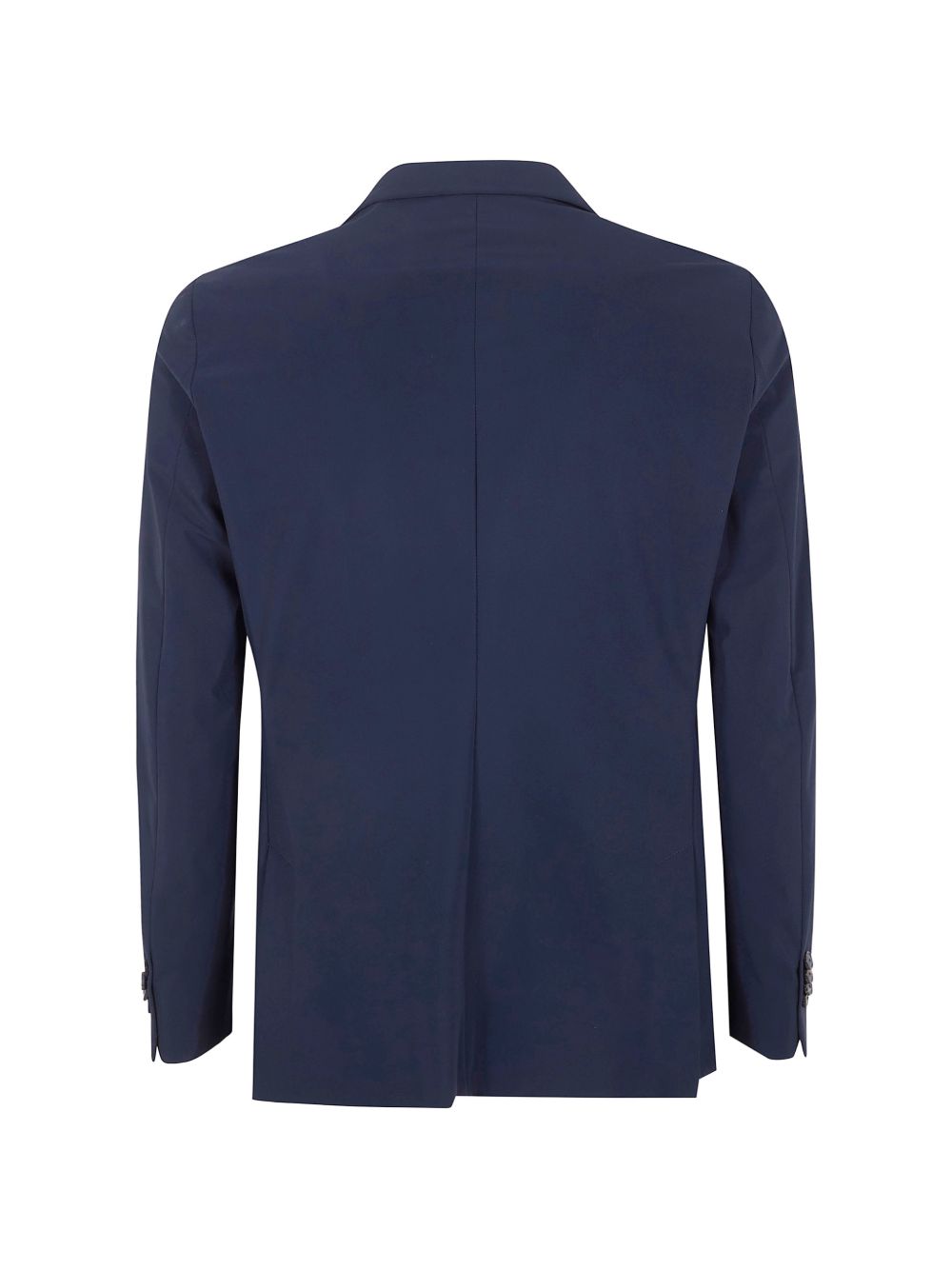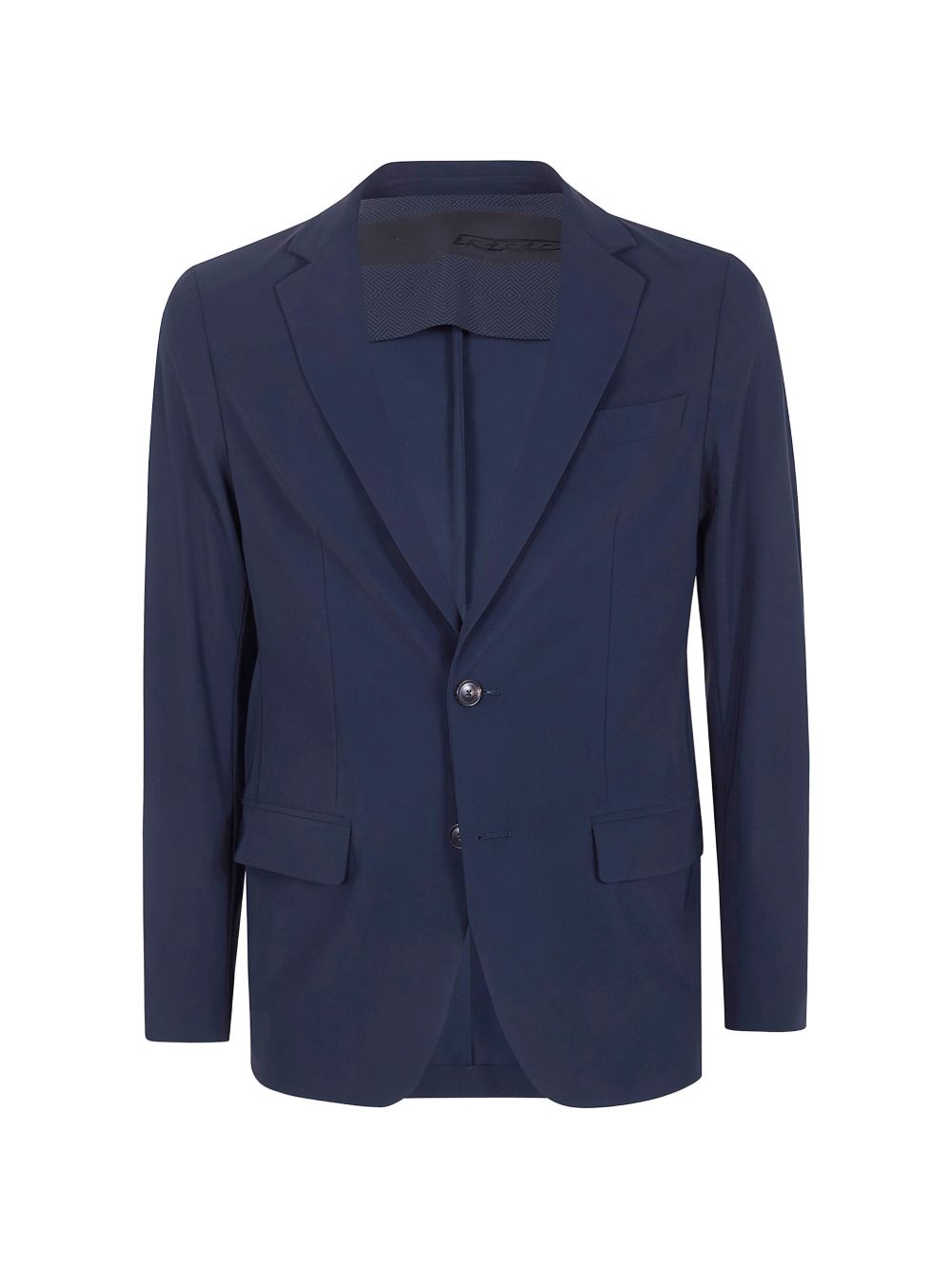 giacca monopetto realizzata in tessuto stretch, antipiega, effetto opaco, chiusura con doppio bottone in corno, taschino sul petto, tasche laterali con aletta, spacchi laterali, polsini con bottoni