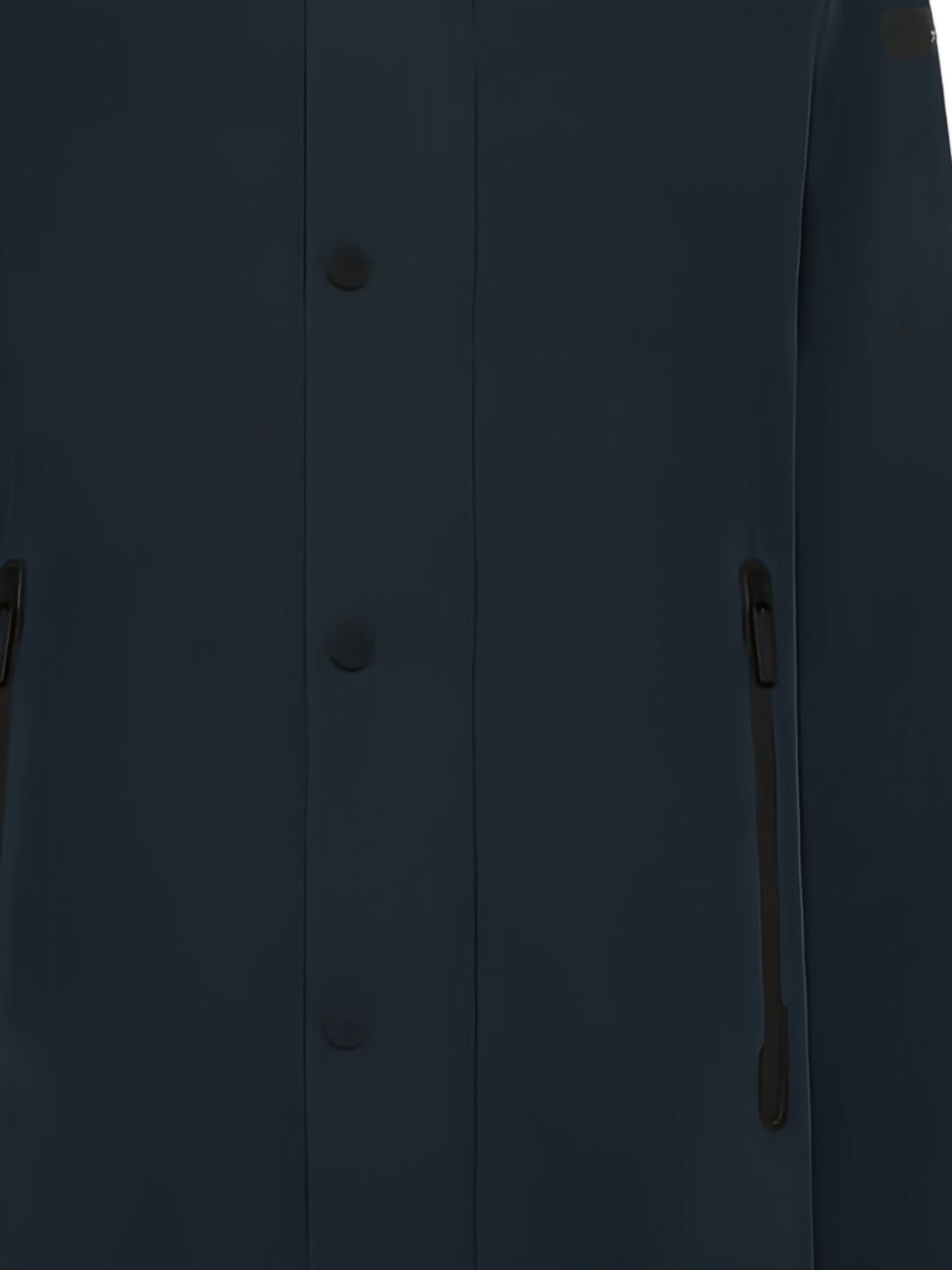 Realizzato in tessuto a membrana Stratofabric#3, impermeabile e traspirante, imbottitura in piuma d'anatra 90/10, chiusura davanti con bottoni a pressione gommati, due tasche davanti con zip termonastrate, cappuccio fisso regolabile con coulisse, applicazione logo a microiniezione sulla manica sinistra, taschino interno con zip nascosta, vestibilità dritta e regolare
