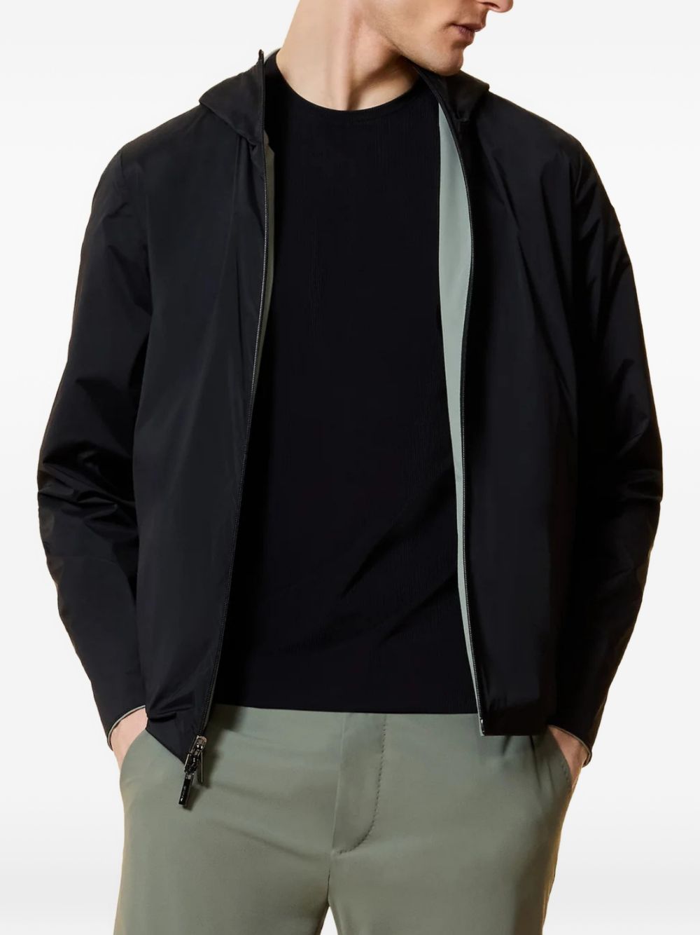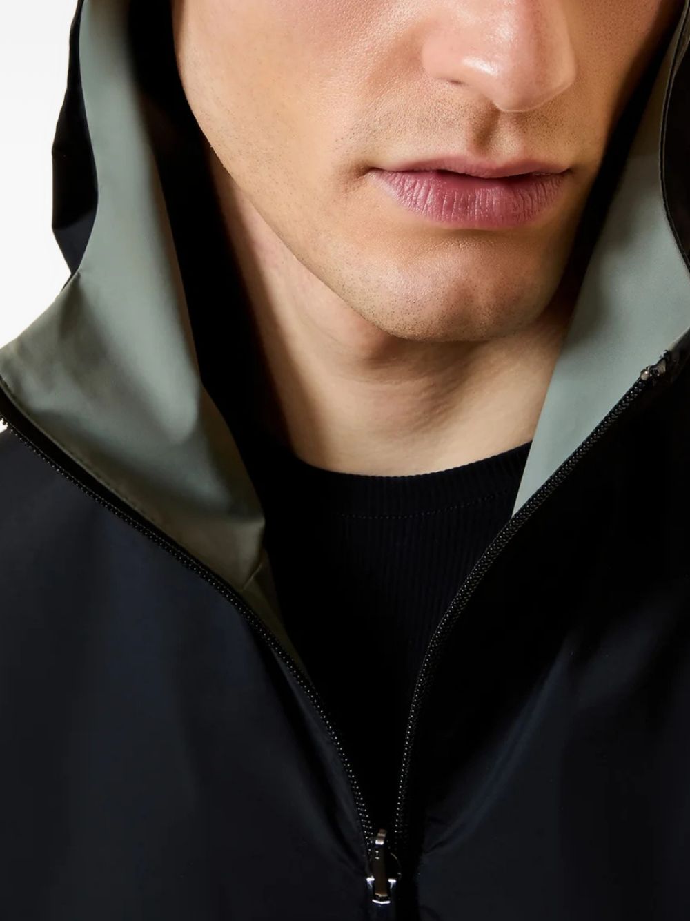 Giacca RRD Montecristo Light Reverse con cappuccio in combinazione verde e nero, caratterizzata da un design reversibile che permette doppio utilizzo.