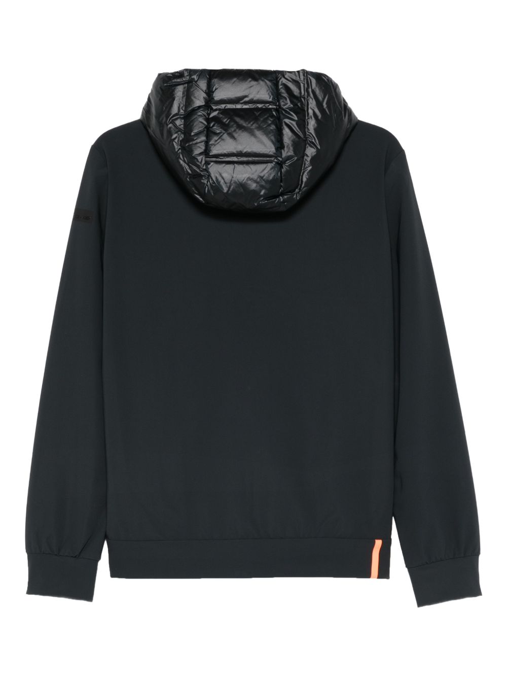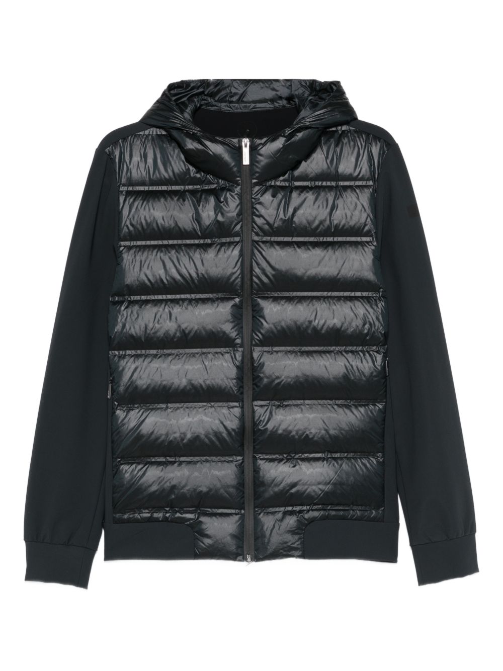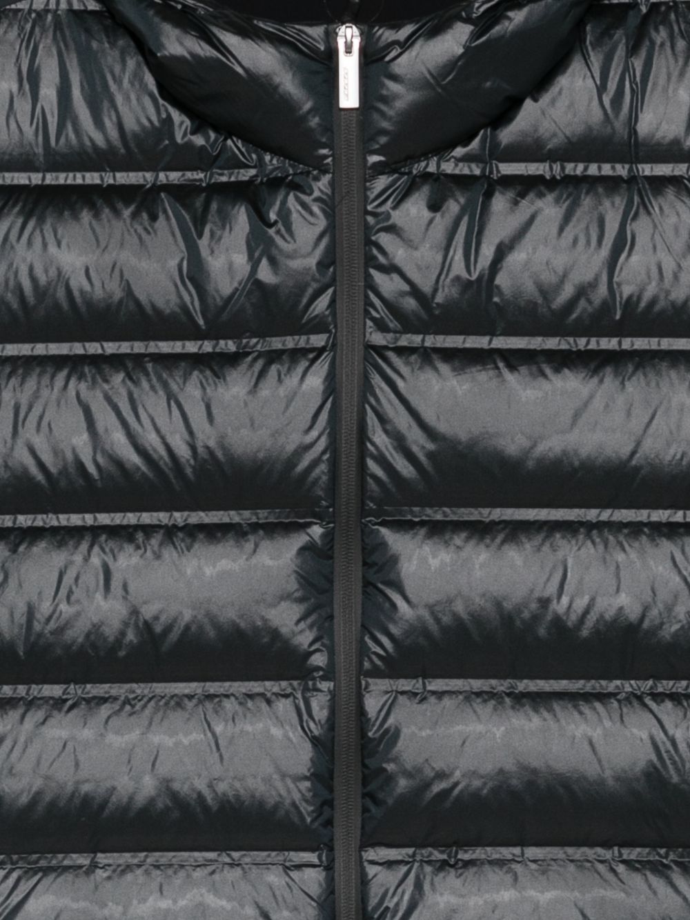 Realizzato in poliammide, impermeabile e antivento, imbottitura in piuma d'anatra 90/10, chiusura frontale con cerniera, due tasche con chiusura nascosta, cappuccio, applicazione logo a microiniezione sulla manica sinistra, taschino interno con zip nascosta.