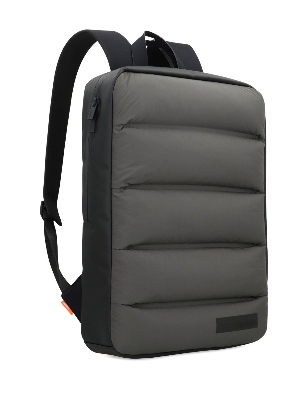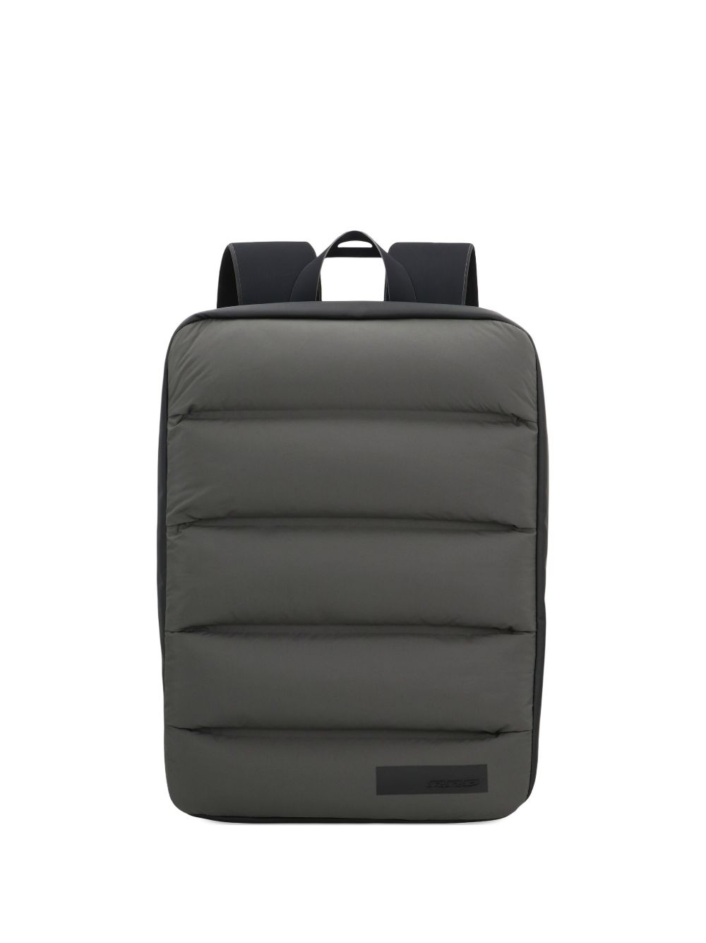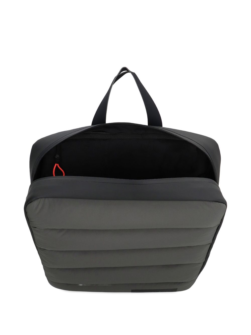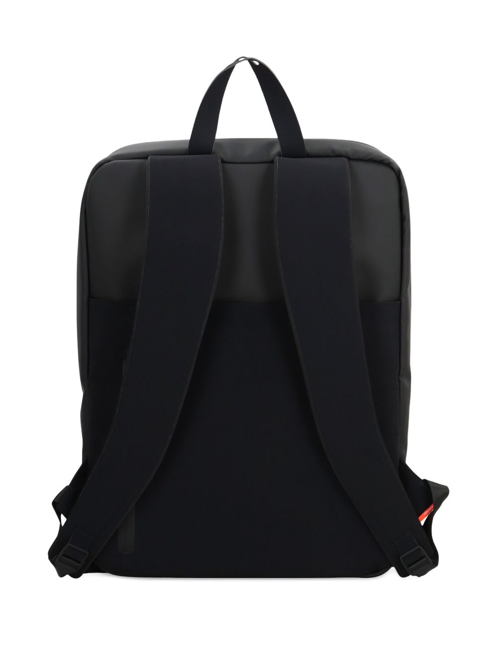Realizzato in poliuretano, design minimal, chiusura superiore con zip, tasca per laptop nello scomparto interno, due tasche interne e una dietro lo zaino con cerniera, interno in velluto, logo a microiniezione davanti, dimensioni 8 x 31 x 41 (cm)