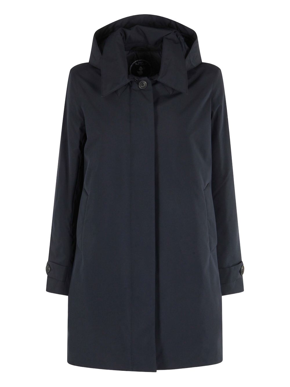 Realizzato in poliestere riciclato, impermeabile, due tasche davanti a filetto, cappuccio removibile, colletto camicia, polsini regolabili con bottone, 100% poliestere riciclato