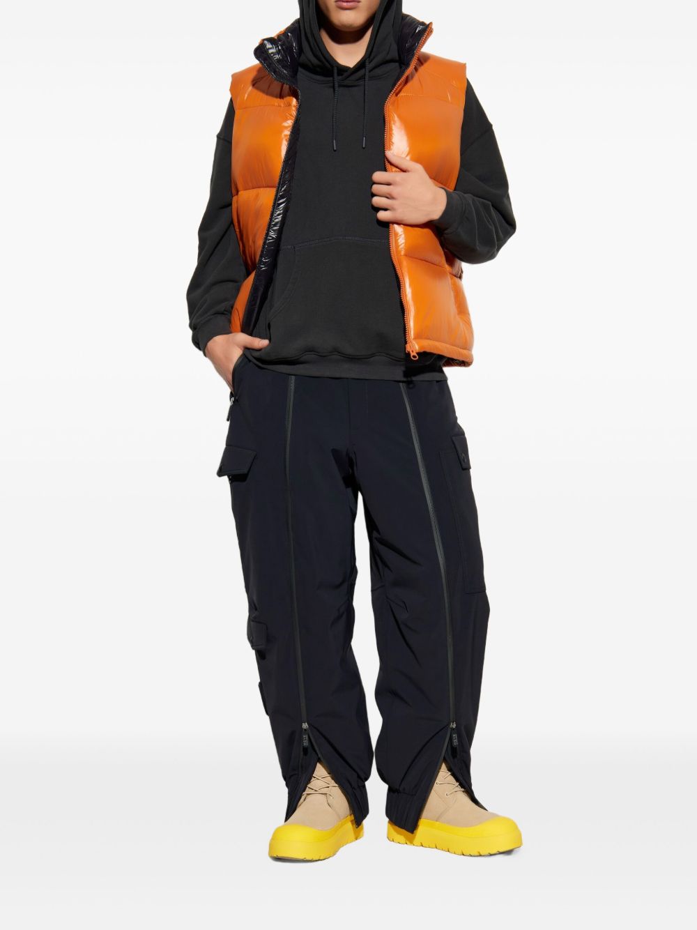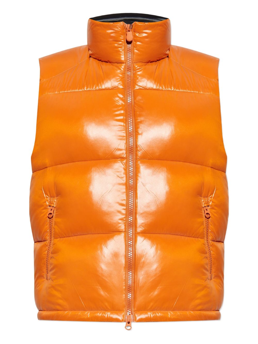 Realizzato in nylon, chiusura frontale a zip, due tasche davanti con cerniera, applicazione logo su lato sinistro
