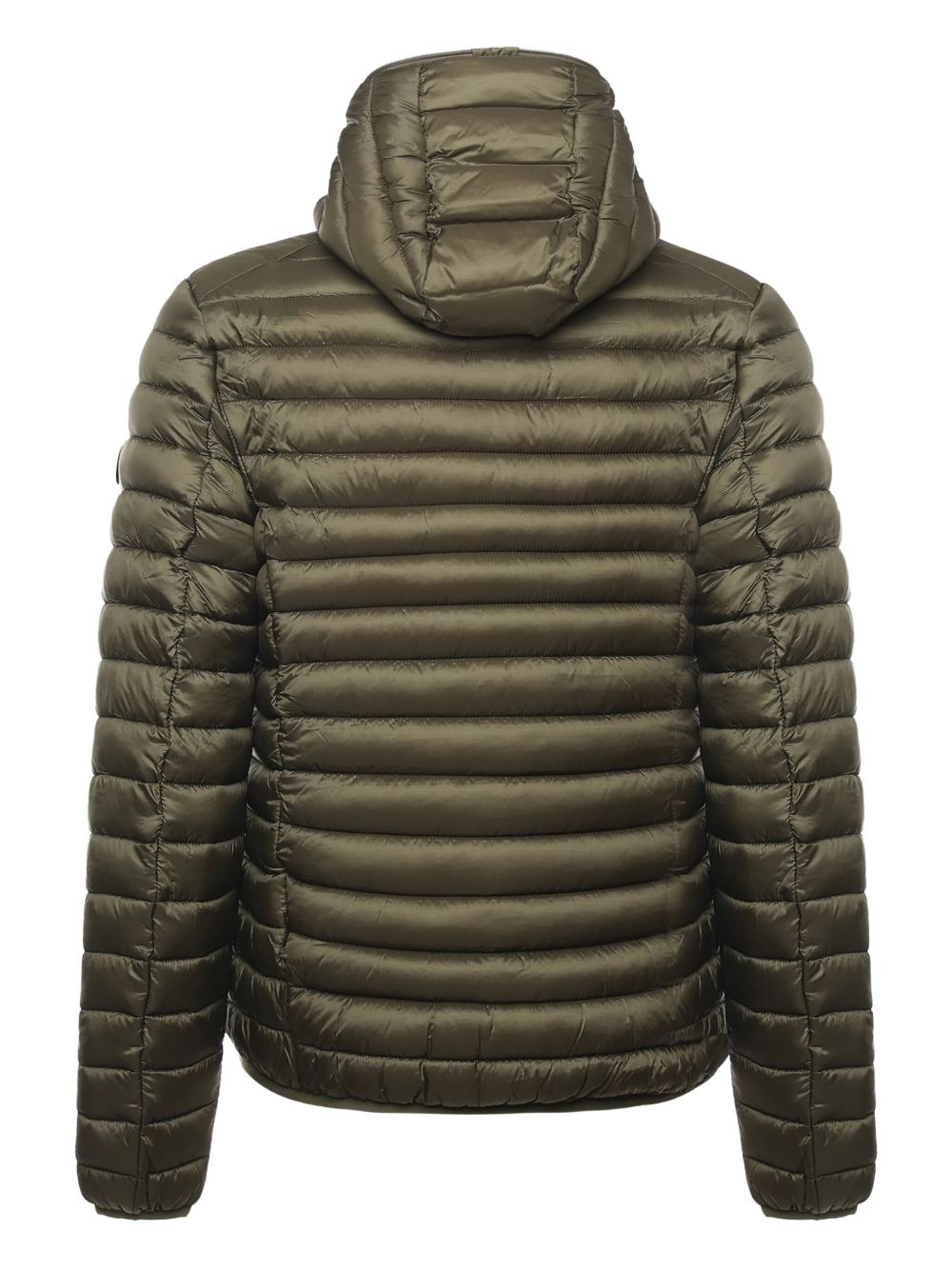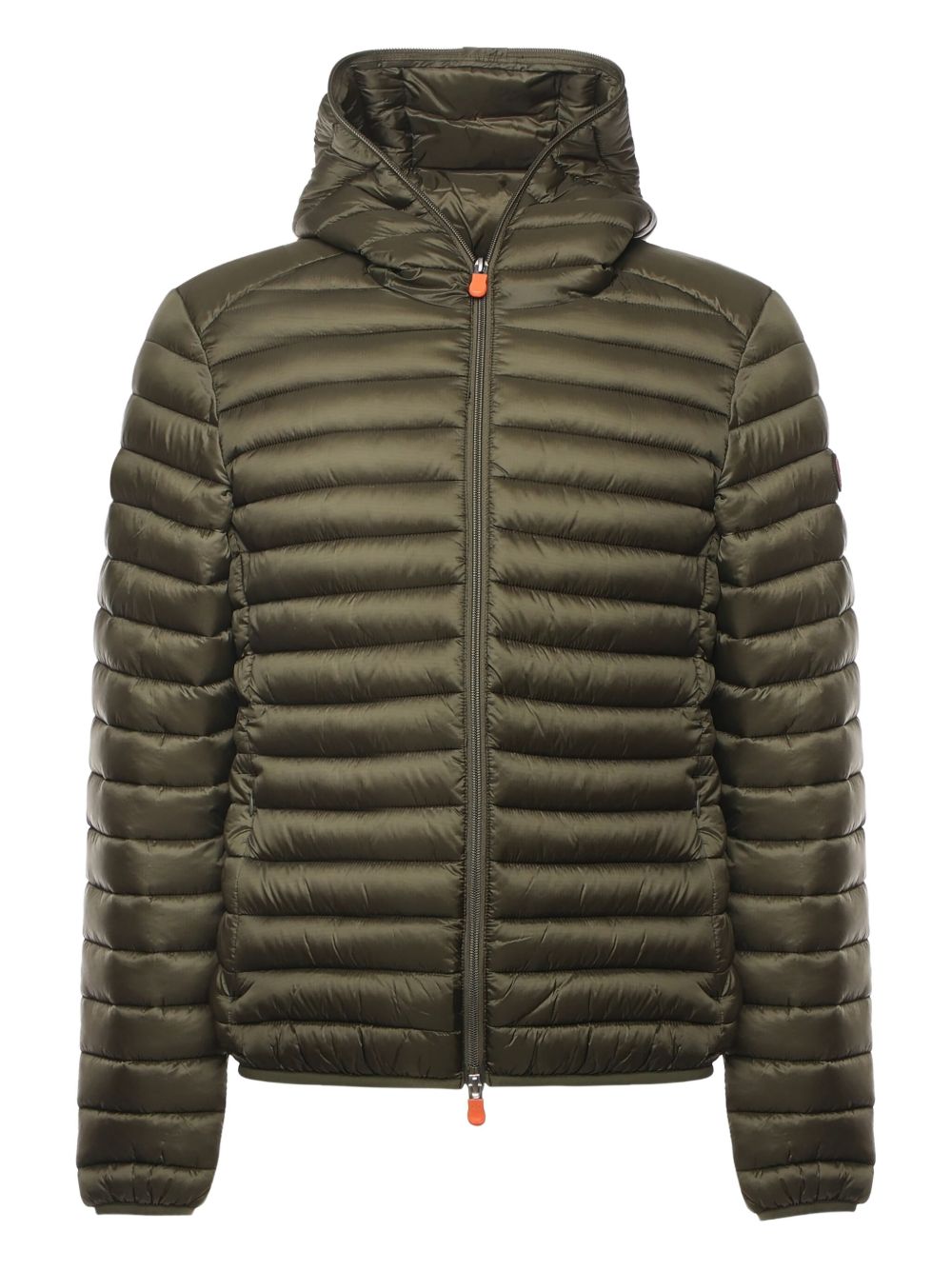 Realizzato in nylon riciclato, trama ripstop, cappuccio, chiusura frontale a zip, applicazione logo sulle maniche, tasche laterali con cerniera.