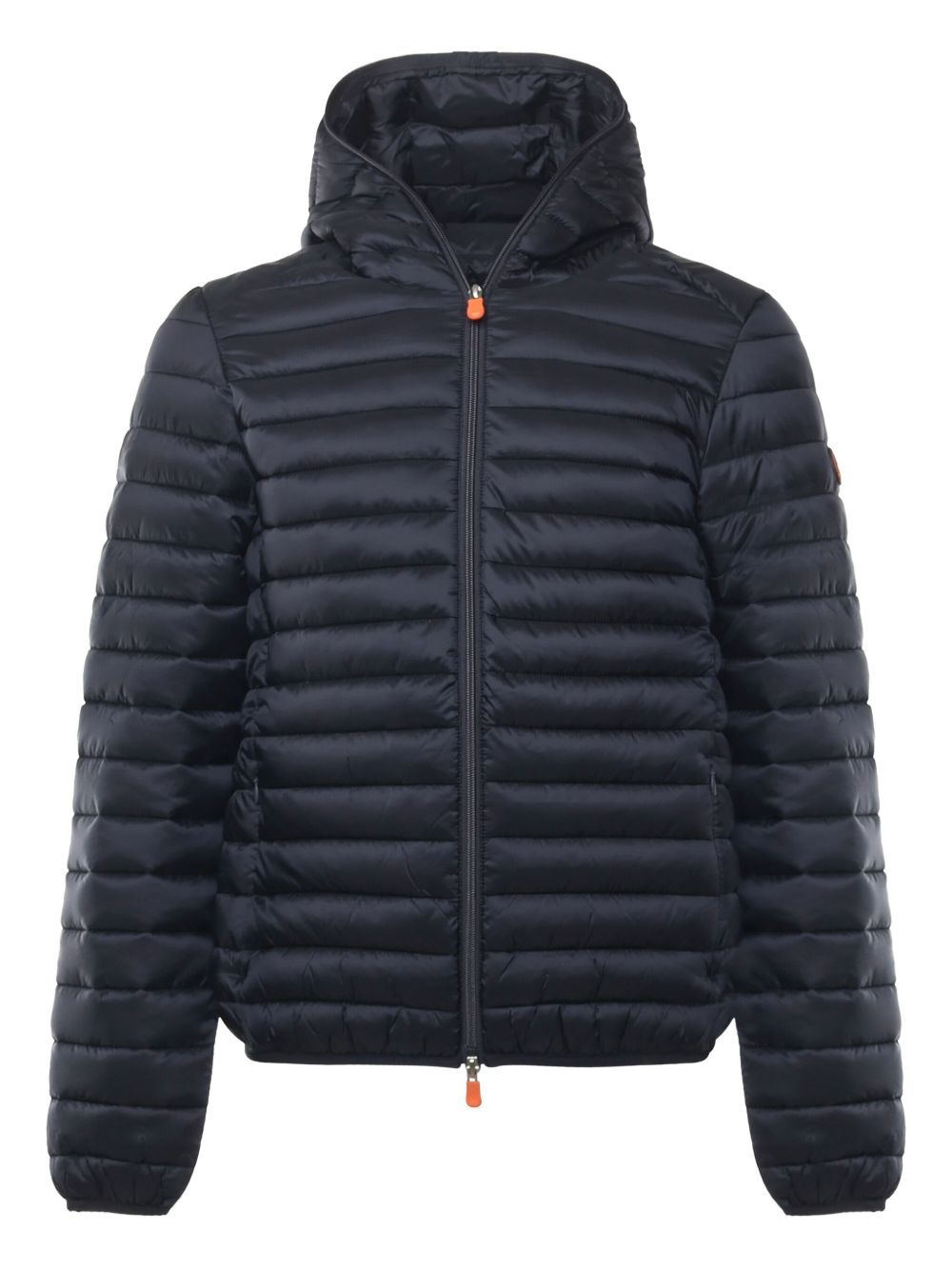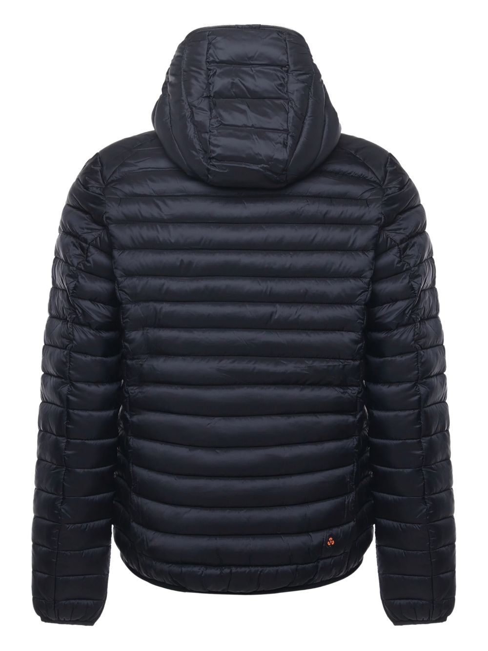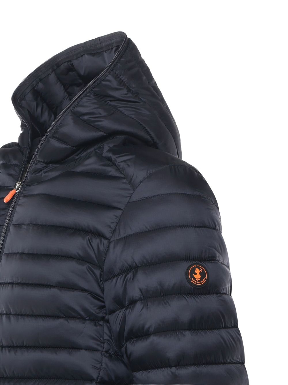 Realizzato in nylon riciclato, trama ripstop, cappuccio, chiusura frontale a zip, applicazione logo sulle maniche, tasche laterali con cerniera.