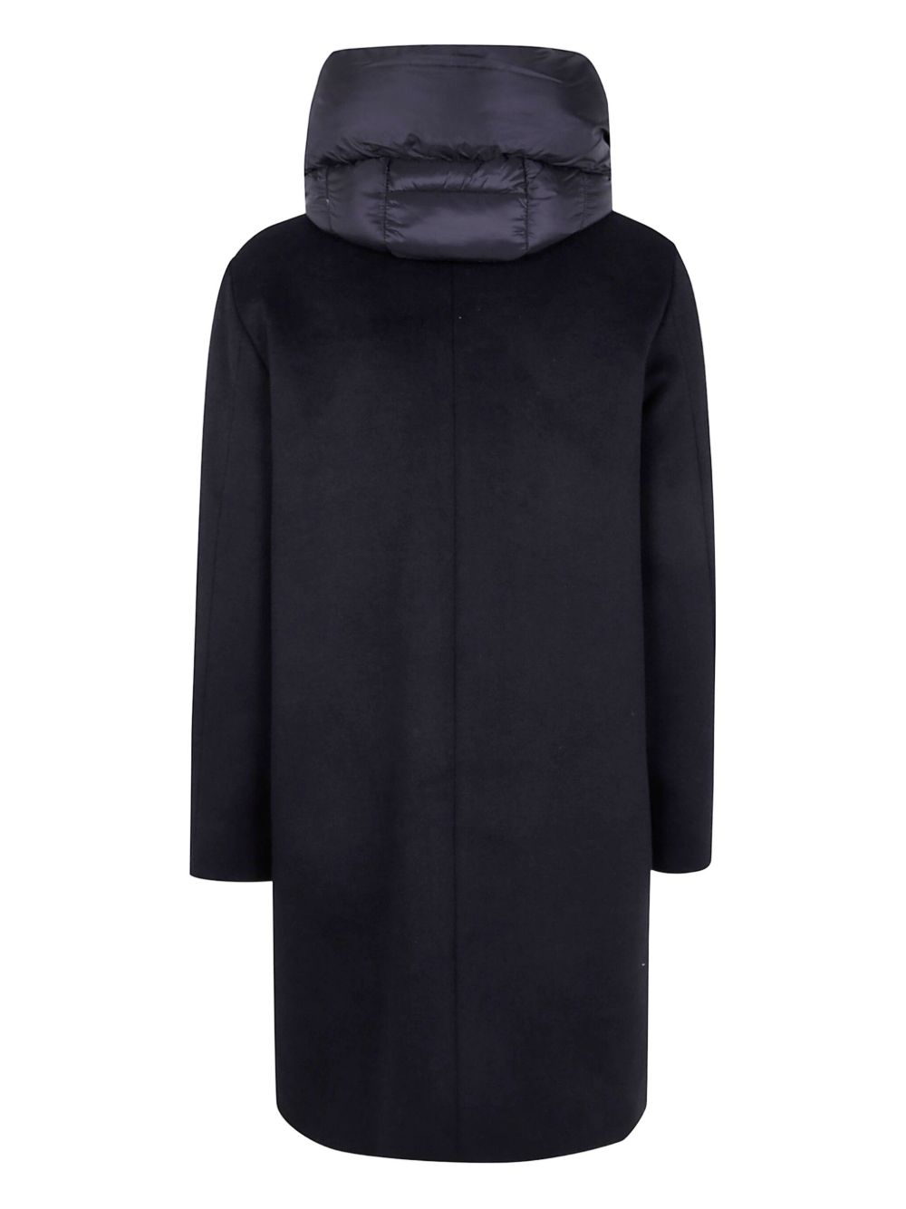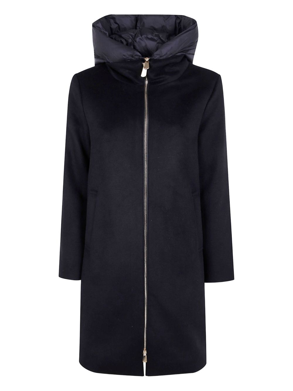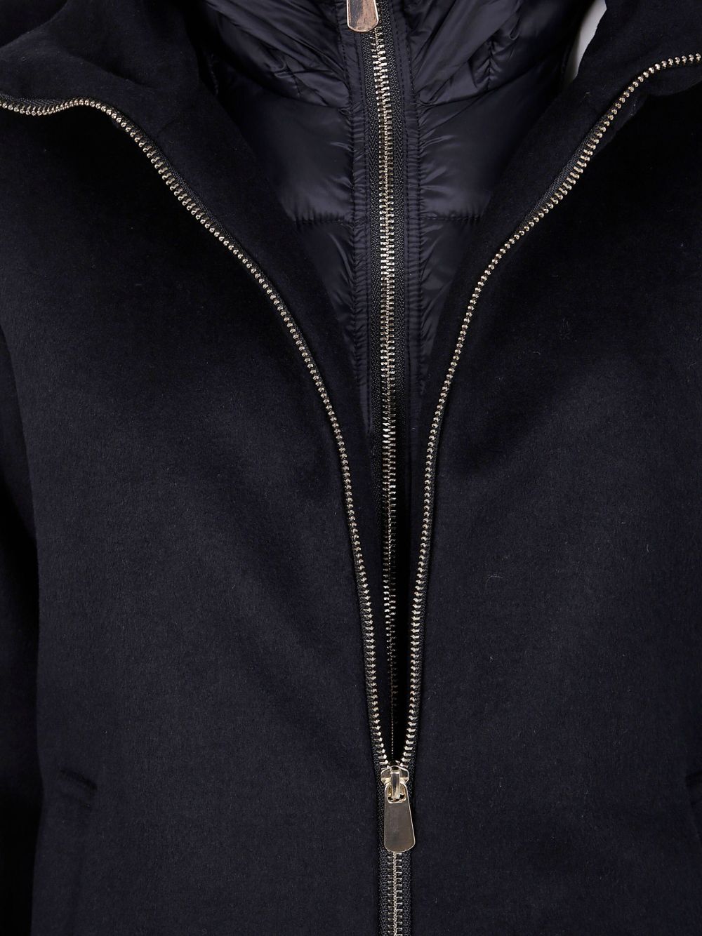 Realizzata in nylon e lana, chiusura frontale con cerniera a doppio cursore, cappuccio, due tasche davanti a filetto, imbottitura interna in nylon con chiusura a zip, 50% nylon, 50% lana