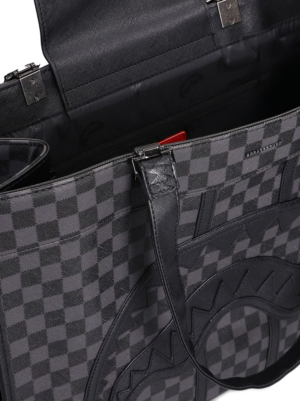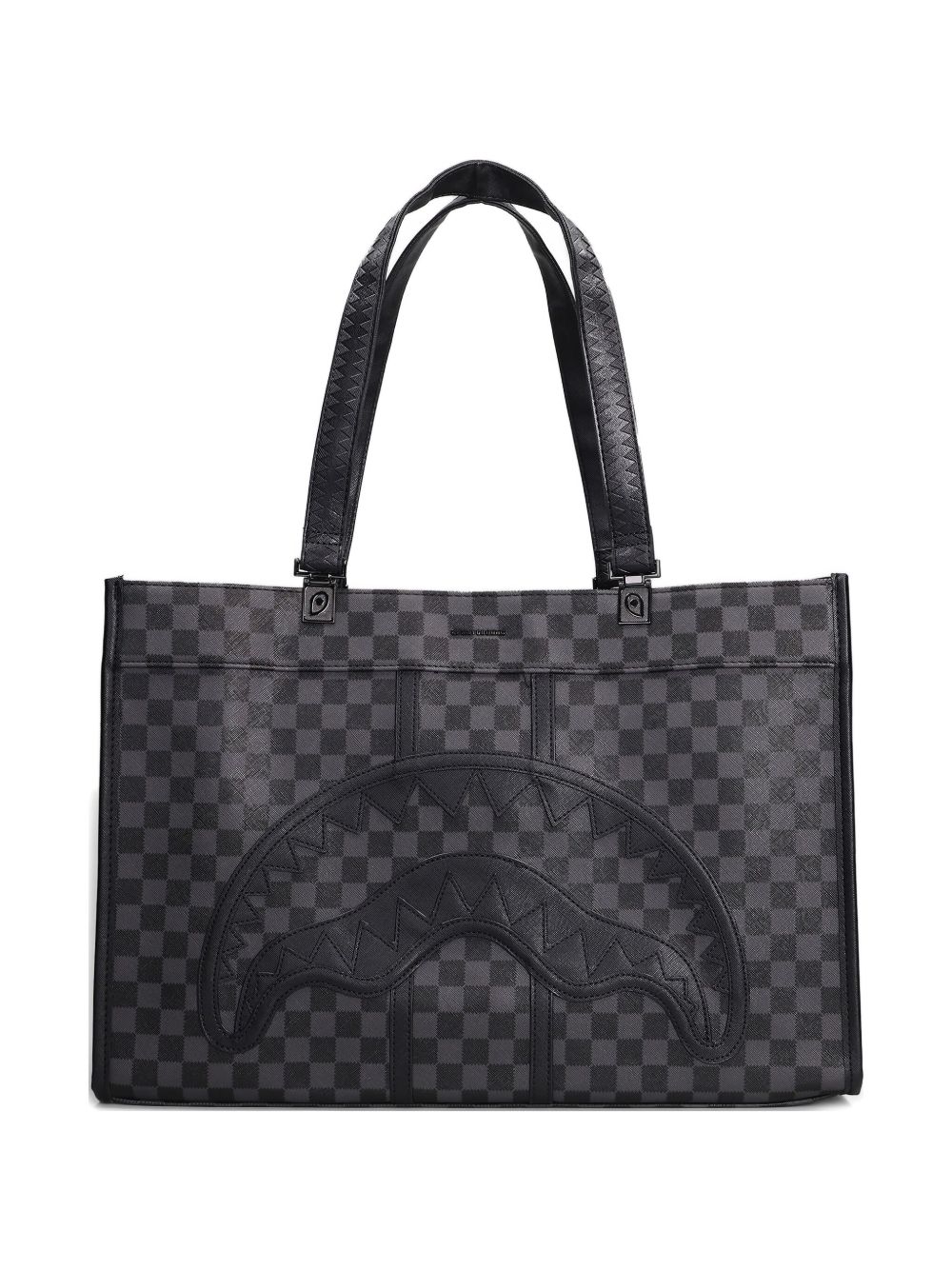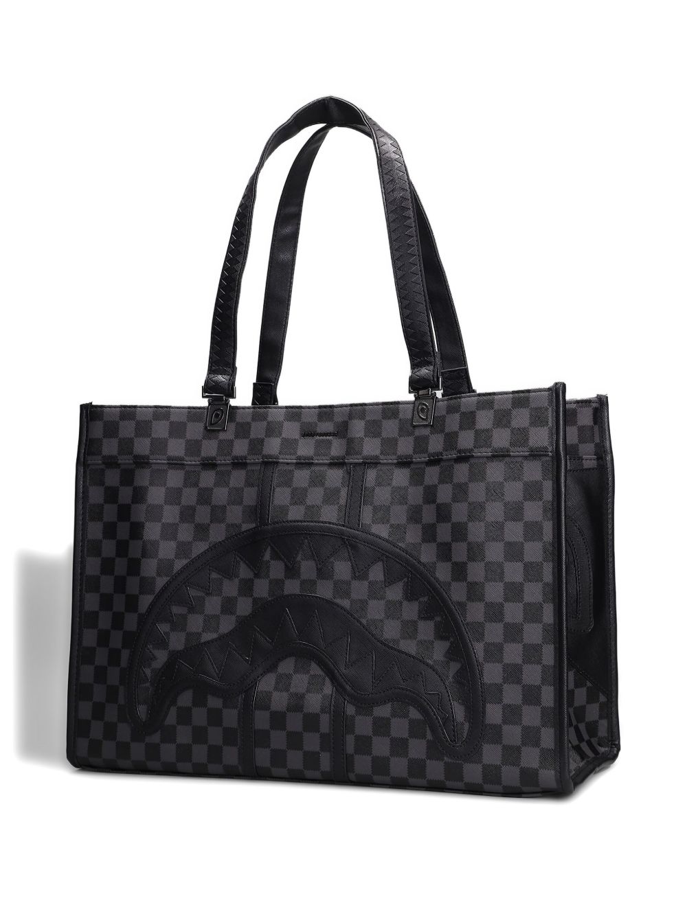 realizzata in ecopelle, motivo a quadri, doppio manico, larghezza 36 cm, altezza 30 cm