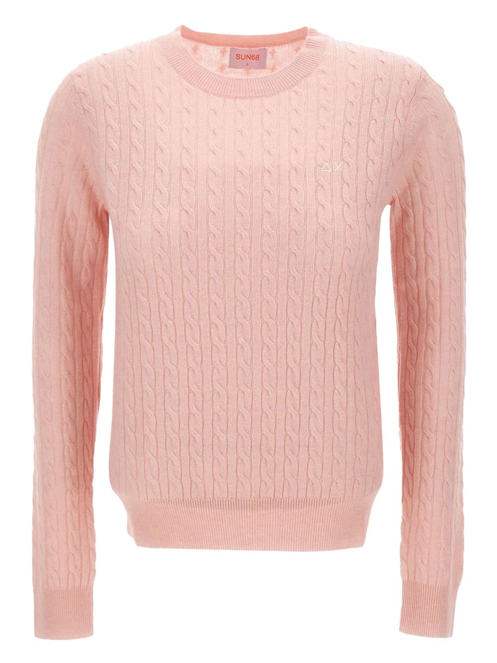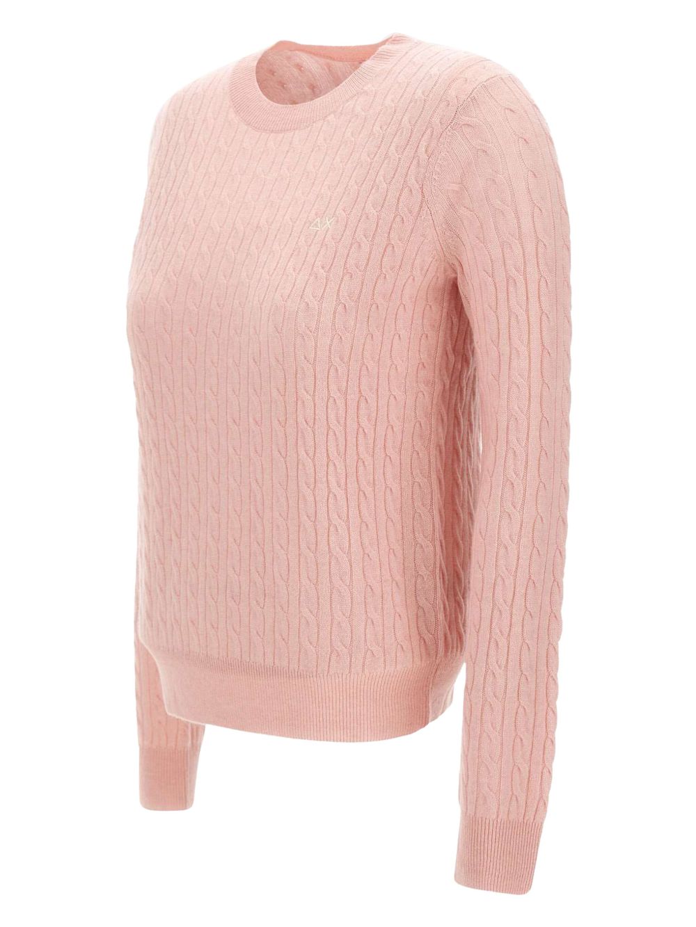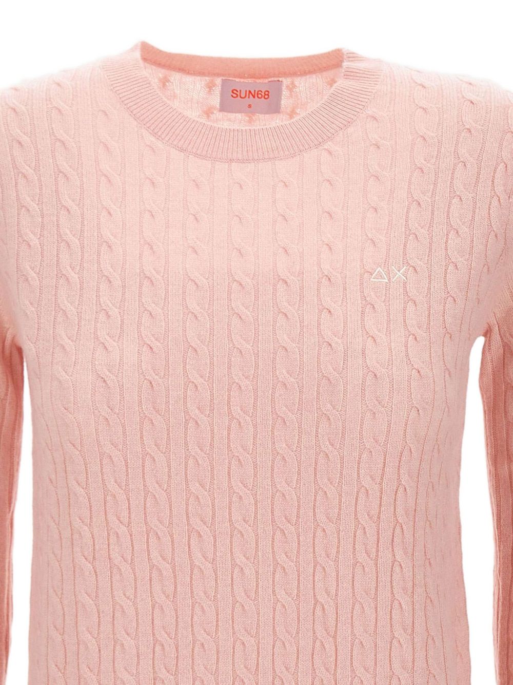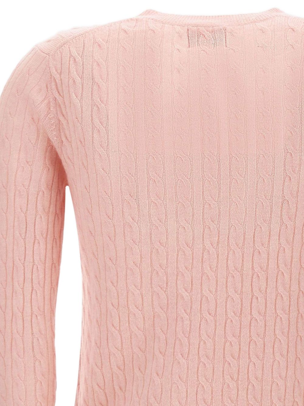 Realizzata in filato di lana e cashmere, lavorazione a trecce, girocollo, logo ricamato sul petto, 90% lana, 10% cashmere